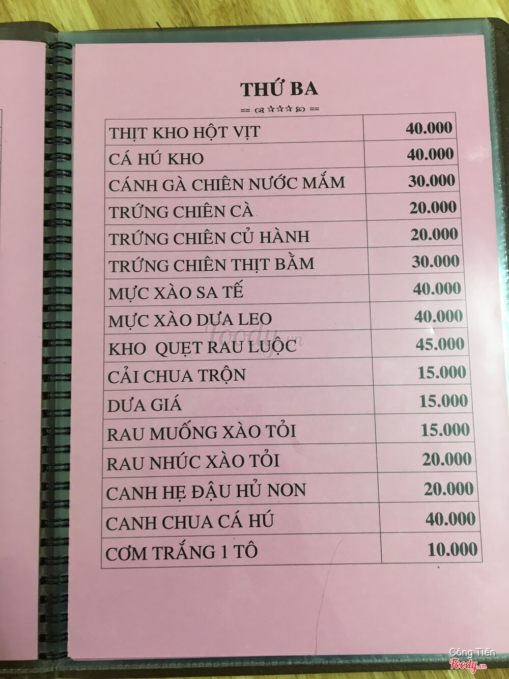 Ghi chú đặt bàn
