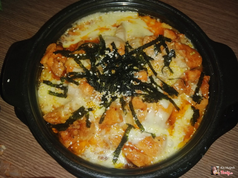 7.2Mì Cay June Noodle House (Gochu) - Thống NhấtChi nhánh này nhìn có vẻ nhỏ, ko bắt mắt như bên*** Tầng trệt để xem mình ngồi ở tầng 1. Khá nhỏ. Có vài bàn à, tầm 3 bàng ghế cao, vs 2 hay 4 bàn ngồi bệt thôi. Mình nghĩ trên lầu chắc rộng hơn. Order lẩu nhưng hết, nghe loáng thoáng là hết nồi í. Mì cay thập cẩm. Vị ok, đậm đà. Ko thích cá viên ở hệ thống June. Lần này thử gà phô mai. Hình như 100k, chờ tầm 20, 25 phút. Có gà và toopokki, phô mai, rắc 1 ít mè và rong biển. Gà thơm, béo. Hơi nhiều dầu nhưng vị ăn rất là ok nè. ...Xem thêm