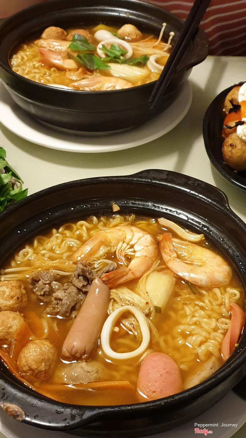 8.4Mì cay NagaẤn tượng đầu tiên là thái độ phục vụ của nhân viên khá tốt, thân thiện, hiếu khách từ giai đoạn gửi xe. Vị trí quán tốt, nhiều chi nhánh. Mì hơi cay so với mặt bằng chung nhưng ăn được. Nước dùng ngon đậm đà. Mì mềm nhưng k nhão nói chung là vừa ăn. Mới thử 2 loại là mì kim chi bò viên và mì kim chi hải sản. Topping nhiều. Có điều hơi thiếu rau và nấm kim châm. Menu nước hơi nghèo nàn nhưng combo mì với pepsi vẫn huyền thoại. Ấn tượng tốt và sẽ quay lại ...Xem thêm