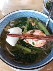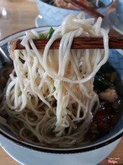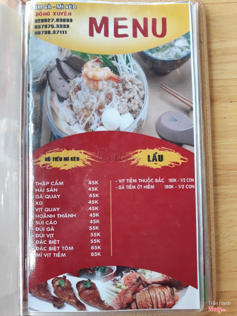 8.6Mì Kéo Kung Fu & Cơm Gà Đông XuyênĐi ăn sáng cuối tuần w nhỏ em ở khu gò vấp, được chở đi chứ mình không rành đường khu này lắm, địa chỉ quán này thì tương đối rõ ràng, dễ kiếm, đường bự và không quá đông. Quán tương đối rộng rãi ha, nói là ăn sáng chứ hẹn nhau shopping vòng vòng cũng tới hơn 11h luôn òi nên qua cữ sáng quán vắng đi 1 chút. Không gian rộng, nhìn sạch sẽ, mỗi bàn có thùng rác nhỏ nhỏ nên dưới sàn ko có rác, ok khoản này. Đến đúng lúc có chú đang biểu diễn kéo mì nè, quán mì kéo phải có màn kéo mì thế này mới đúng điệu nha, khá hiếm thấy vì thường mấy quán dù có bán mì kéo nhưng tự xử trong bếp ko à, nhìn vầy thì yên tâm ăn vì nguyên liệu và chất lượng rõ ràng. Ngoài mì kéo các loại thì quán có cơm, gà vịt heo quay tại chỗ, dimsum, lẩu nữa, đi team đông cũng dễ gọi món. Mình w nhỏ em gọi 2 tô mì hải sản và mì gà quay 45k/tô, giá hơi cao so với khu vực nhưng hợp lý. 2 tô ra món nhanh, nhìn khá đầy đặn, nhất là tô gà quay của nhỏ em, già quay được chặt miếng, gà ta thịt dai và vỏ còn giữ độ giòn nhẹ. Tô hải sản thì có tôm, mực, nước dùng cả 2 tô giống nhau, độ trong nhẹ, nêm đậm đà, với mình thì hơi mặn xíu. Phần mì trong mỗi tô tương đối nhiều nha, sợi mì không ngán, để lâu không bở hay mềm, ăn ok lắm. Ai ở gần khu này nên ghé thử ha, quán mở suốt từ sáng đến tối, m hơi xa nên có dịp sẽ quay lại ủng hộ. ...Xem thêm