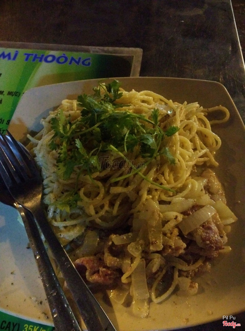 6.8Mì Thòong - Mì Ý Giá ViệtQuán vỉa hè, chỗ hơi tối. Mình gọi phần mì bò sốt kem nấm mang về, 35k/phần. Mì nhiều, ăn béo nhờ sốt kem, thịt bò ít, lại không được mềm, nấm là nấm rơm. Lúc mình lại khách ăn tại chỗ đông nên chờ mua về đợi hơi lâu. Nói chung ăn được thôi chứ không ngon, giá cũng ổn. ...Xem thêm