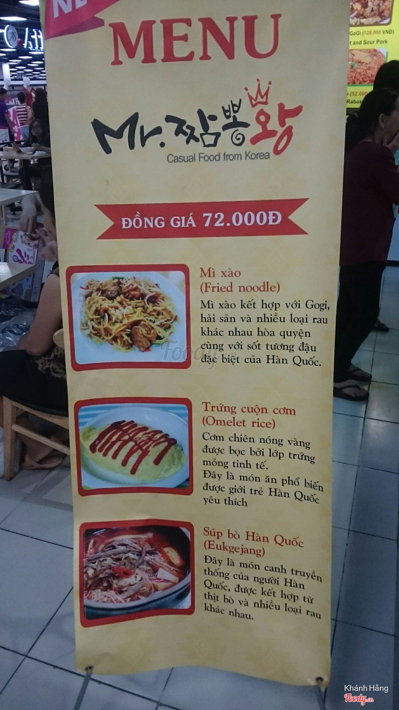7.2Mr. Champon King - Món HànQuán này nằm ở tầng trệt Lotte ngay chỗ cầu thang cuốn đi xuống, hồi đó chỗ này là Korokke bánh khoai chiên á. Bây giờ mình thấy chỗ này bán cũng giống Korokke - bán mấy món Hàn, có điệ nhiều món hơn. Không gian bàn ghế cũng y như vậy. Mình ăn một phần kimbap chiên với một phần tokbokki. Kimbap khách gọi mới chiên nên nóng, giòn cơ mà phần gạo ở trong giống như là được quết nguuễn dẻo dẻo chứ không thấy hột cơm đâu hết. Tokbokki thì có chả với tok, ăn vừa miệng không cây quá. Lúc ình tới thì hơi trễ, tok nấu lâu nên có hơi mềm nhưng ăn vẫn dẻo, nhìn ít ít mà mình múc lên là cứ còn hoài. Nhân viên phục vụ nhanh chóng, không phải chờ lâu, khá thâ thiện ...Xem thêm