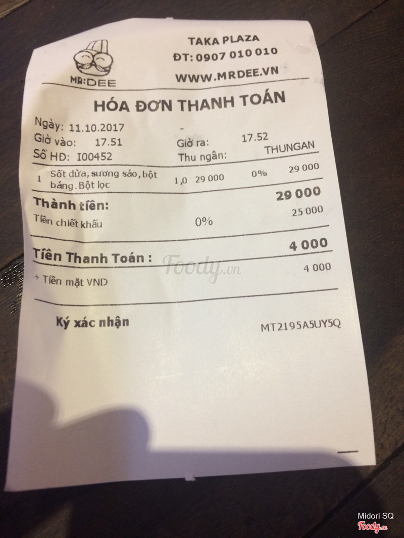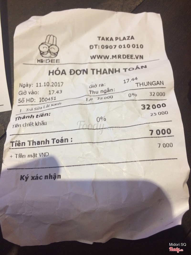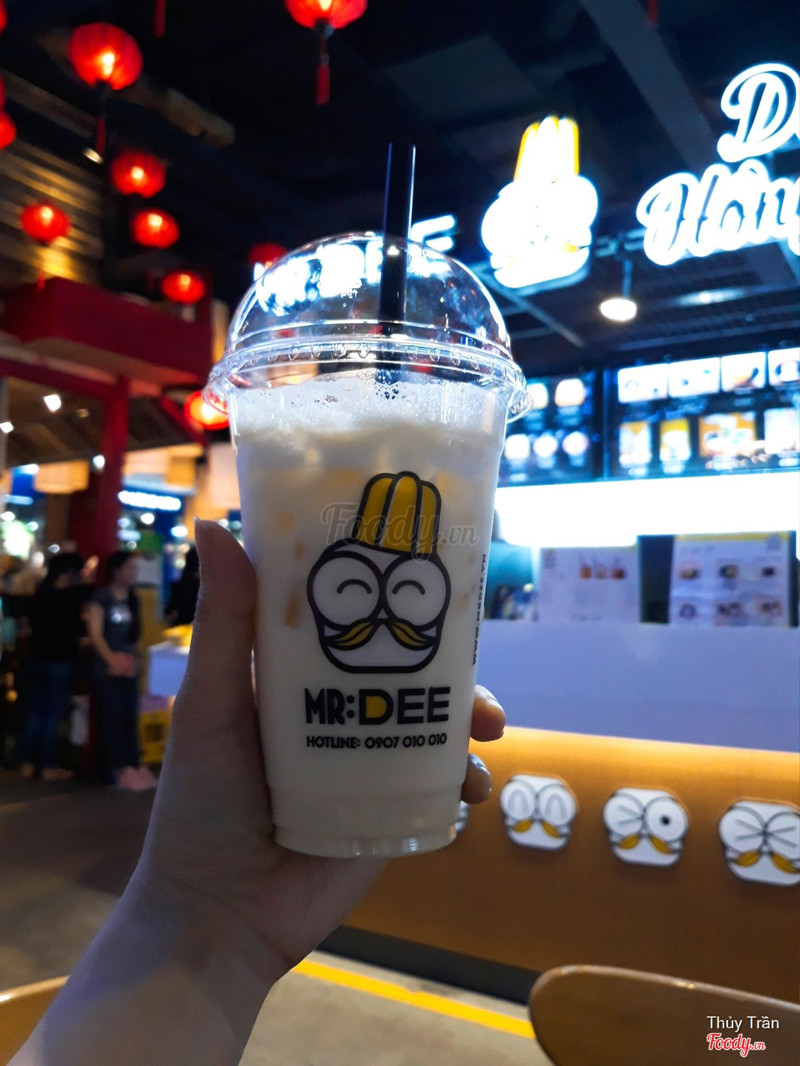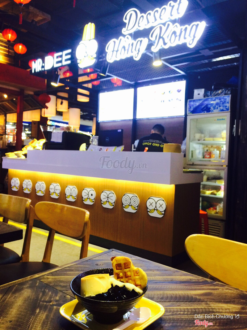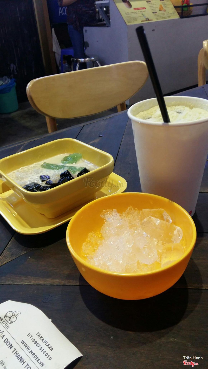 7.4Mr. DEE Asian Food Town - Món Tráng MiệngPhát hiện trong app meete có khuyến mãi giảm 25k cho bill bất kỳ nên mình lấy mã từ 2 máy và rủ bé em đến đây vào tầm chiều tối. Chi nhánh này nằm dưới khu ẩm thực dưới hầm của công viên 23.9, gửi xe ở hầm kế bên. đi theo cầu thang vào thẳng taka plaza, đi vào khu ẩm thực nằm thấp hơn so với khu quần áo và coofmart, đi thẳng tới cuối đường rùi quẹo trái sẽ thấy quầy này nằm đối diện coof và pizza company. Quầy nhỏ thui, có 3 nhân viên vừa order vừa pha chế và đứng phát tờ rơi giới thiệu cho khách luôn. Thủ tục check mã cũng hơi lắc nhắc, không áp dụng cho bingsu, món mặn nên mình gọi 1 trà sữa xanh lài và 1 phần chè tách 2 bill. trà sữa 32k bù 7k mà cái ly nhìn hơi cheap, ly thân giấy dù là vẫn cứng cáp nhưng thấy không chắc chắn, không có nhãn hiệu riêng gì hết, trà sữa hơi ngọt, vị ok. Chè 29k bù 4k gồm cốt dừa, sương sáo, bột bán, bột lọc ăn cũng ok. Ở đây thì lượng khách không nhiều lắm, lấy món tại quầy rùi ngồi ngay dãy bàn ghế trước quầy luôn. Có dịp sẽ ghé lại ủng hộ. ...Xem thêm