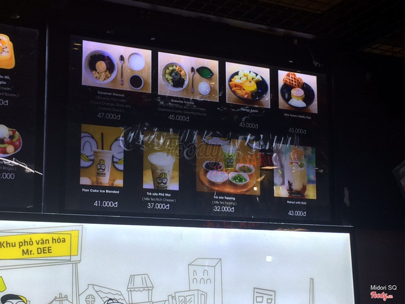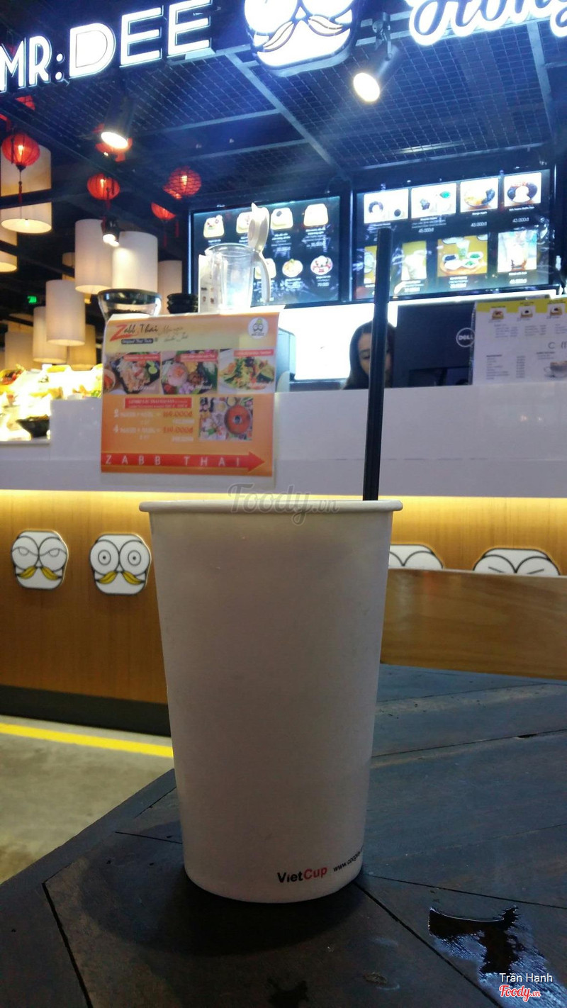 7.0Mr. DEE Asian Food Town - Món Tráng MiệngNằm trong khu ẩm thực dưới lòng đất. Cạnh chỗ thang bộ. Quán nằm bên tay phải. Không gian: là 1 gian hàng be bé, chỗ ngồi chung với các quán khác. Tuy nhiên bàn ghế không có người dọn dẹp thường xuyên nên hơi dơ. Nhân viên phục vụ khá nhanh. Do mình không có thời gian ngồi lại nên chỉ gọi 1 ly trà sữa 32k mang đi. Ly có in logo nhìn rất vui mắt. Mình chọn 50% đường nên uống vừa miệng. Cảm nhận thấy so với giá tiền thì hơi mắc vì trà sữa chỉ ơt mức tạn được chứ không ngon lắm ...Xem thêm