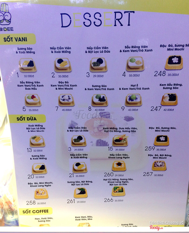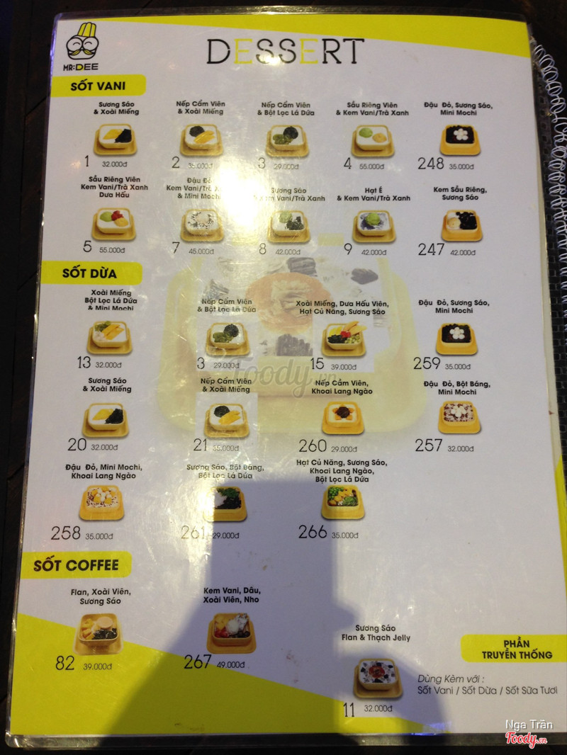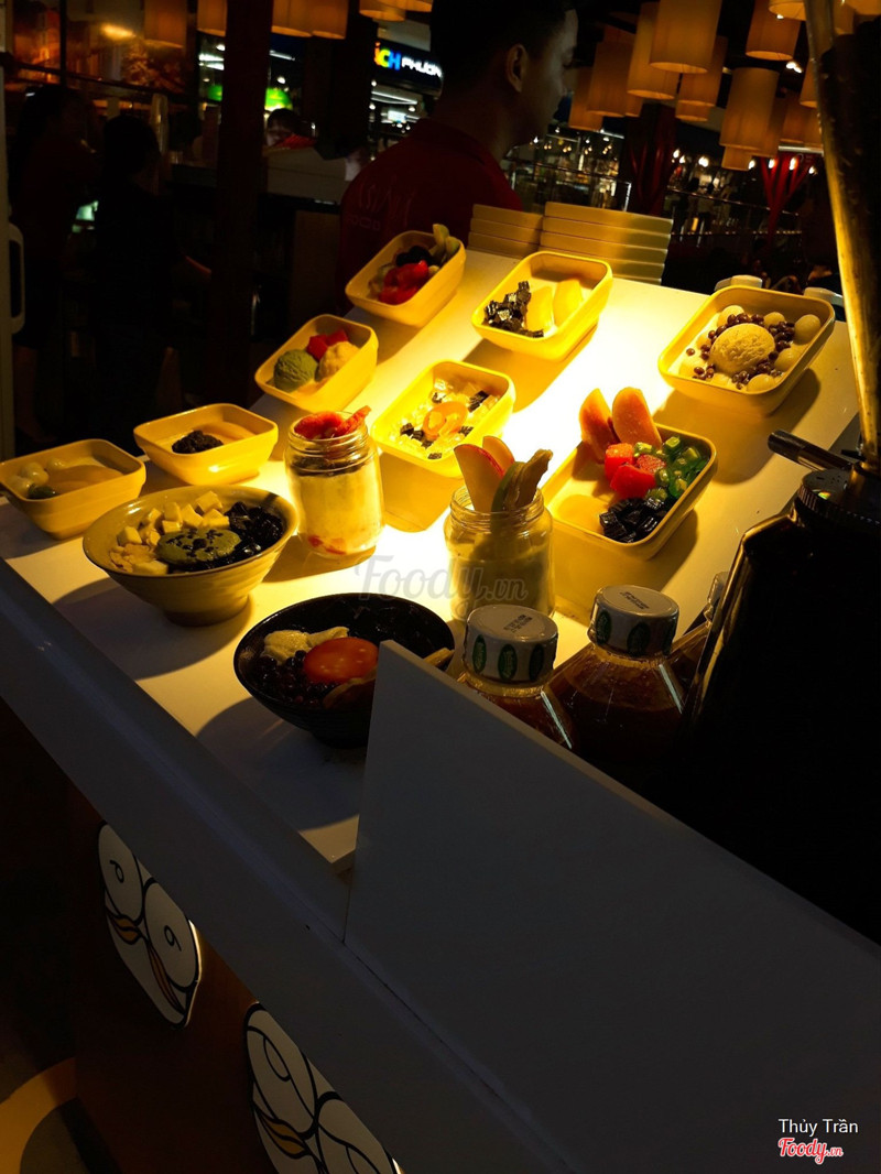 5.8Mr. DEE Asian Food Town - Món Tráng MiệngTráng miệng với đồ ngọt đủ thứ topping nhai cho vui miệng như Mr Dee mình từng ăn ở chi nhánh khác rồi và cũng thích nên đến đây ghé ăn tiếp. 15. Xoài miếng, dưa hấu viên, hạt củ năng, sương sáo - 39k 266. Hạt củ năng, sương sáo, Khoai lang ngào, Bột lọc lá dứa - 35k Các loại topping ngon đúng kiểu của nó. Nước sốt thì hơi ngọt xíu. Cứ tưởng buổi ăn này sẽ suôn sẻ nhưng ko. Đang ăn mình cắn trúng cái gì đó cứng cứng thì trời ơi đó là móng tay!!! Móng tay đó!!! ...Xem thêm