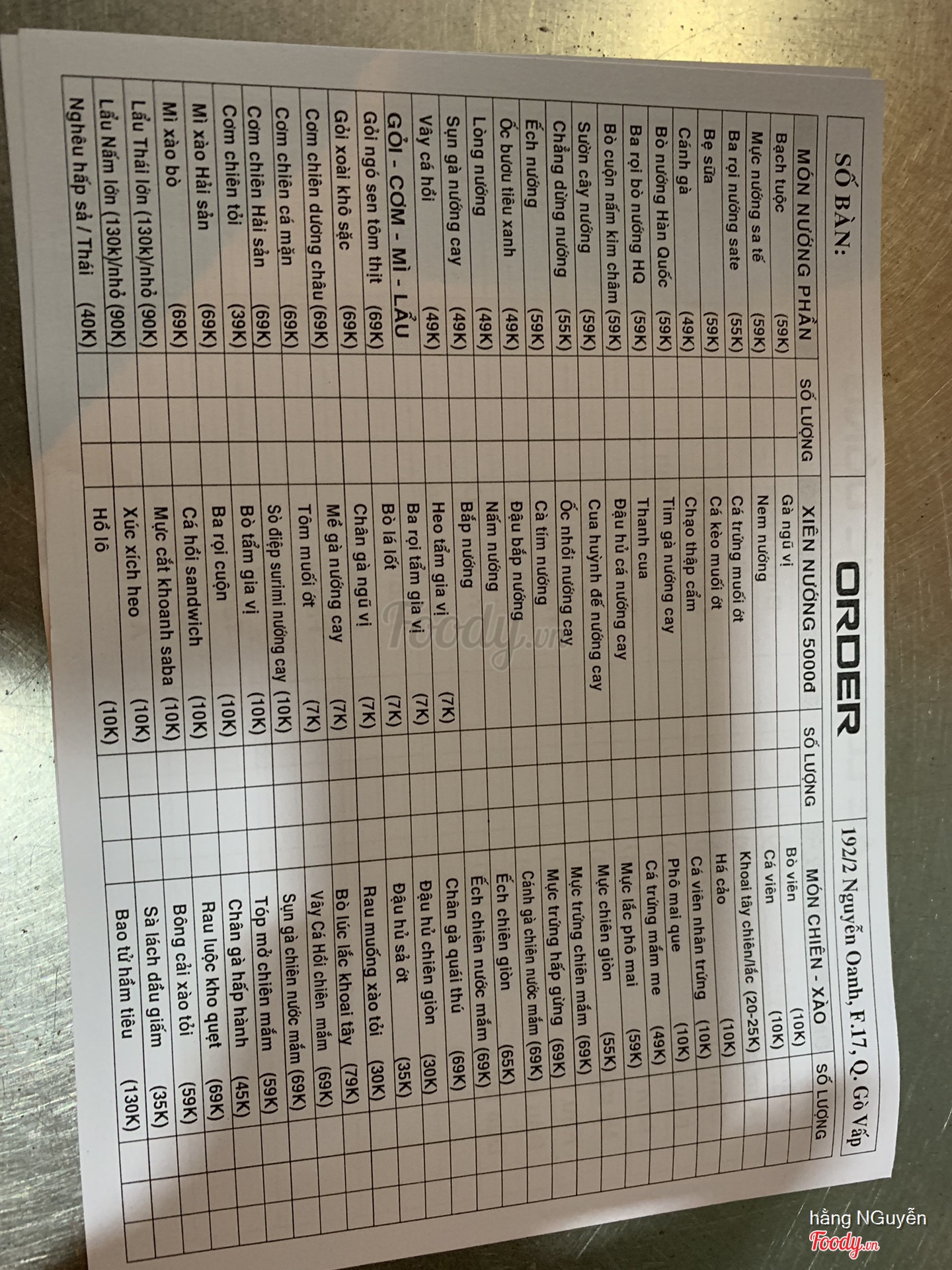 Ghi chú đặt bàn