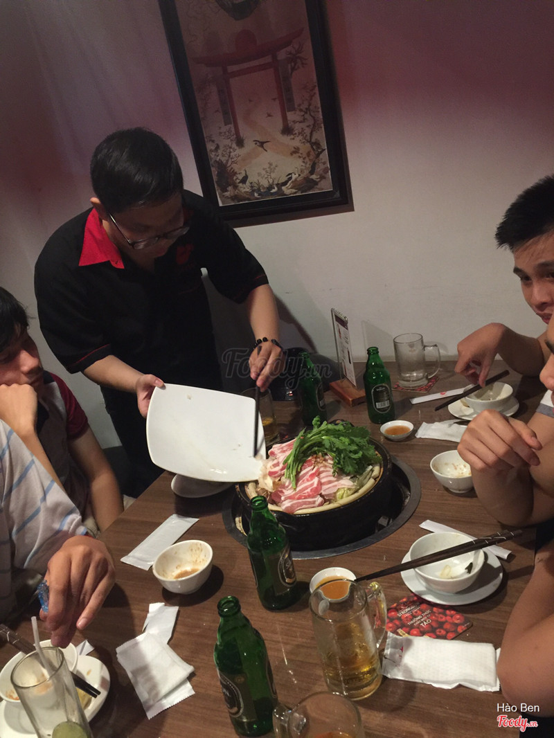 6.0Bánh xèo ngon.Mình đến đây vào buổi trưa, vừa bước vào hỏi 1 nhân viên nam về máy lạnh vì lúc đó quán rất rất nóng thì thái độ lại ngay : " Chị ngồi xuống trước rồi từ từ em bật " ?.? Sau đó thì mình ăn thử lẩu bò Bulgogi, phải nói là cực kì thất vọng. Nước lẩu cực kì chua, mặn ăn không nổi luôn. Mà không đáng đồng tiền gì cả. Gần 350k-400k ( mình kh nhớ giá ) mà chỉ có một tí bò, rau, nấm nhưng nước lẩu chua và mặn quá nên chả ăn được gì. Mình không biết sao chứ bạn mình tưởng nước lẩu bulgogi giống với bên Hàn mà quán này quán Nhật nên chắc mùi vị nó khác quá. Kêu thêm được dĩa bánh xèo thì ngon lắm, ăn rất vừa miệng :) Nói chung là chắc lỗi do bọn mình không hỏi nhân viên nên mới kh vừa ý cái lẩu chứ mình nghĩ bánh xèo quán làm ngon. Ra về gần hơn 600k-700k mà ăn có 3 người không nổi nồi lẩu nên chắc không dám quay lại >< ...Xem thêm