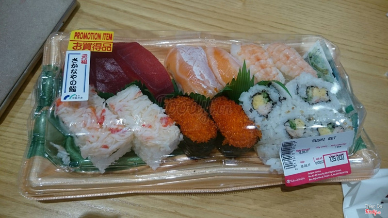 7.6SushiCửa hàng bán sushi giống cửa hàng tiện lợi vậy á, làm sẵn bỏ hộp hết rồi, mình tới lựa hộp nào thích thì mua á. Sau đó mình phải mua thêm nước tương hay washabi ăn kèm. Dù là làm sẵn nhưng theo mình sushi tươi lắm, chắc do bán đắt nên lúc nào thức ăn cũng được tươi mới. Có nhiều loại để chọn, giá cả mình thấy okie luôn, 1 hộp nhiều quá trời mà tầm 100k thôi. Nhưng mà quán không có chỗ ngồi, mua xong mọi người có thể ra mấy băng ghế để sẵn trong taka để măm măm á. ...Xem thêm