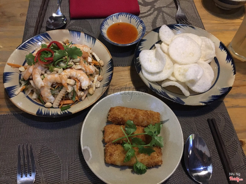 9.4Món ngon, nhân viên dễ thươngQuán nhỏ nhắn, yên tĩnh, nhạc hay và thoáng mát, chủ yếu là những đoàn khách nước ngoài đến ăn. Trang trí phong cách đậm chất làng quê Việt Nam. - Giá cả: các món ăn dao động từ 70k trở lên, vì ở trung tâm quận 1 nên giá vậy mình thấy không phải quá mắc. - Điểm cộng: Nhân viên lịch sự, tận tâm. Thức ăn ngon, nêm nếm vừa miệng. Mình gọi món gỏi củ hủ dừa, cá chẽm sốt chanh dây, chả giò hải sản với sườn xào chua ngọt. Gỏi ăn rất vừa miệng, có kèm bánh phồng tôm. Cá chẽm ổn, có kèm dĩa rau xào nhỏ. Mình không thích ăn cá nên không ăn cá nhiều, nhưng rau xào thật sự rất ngon, tiếc là nó hơi nhỏ :( Chả giò hải sản ăn kèm sốt xí muội, mình ưng nhất món này. Nước mình gọi Nep's Smoothie với Saigon Sunrise (cocktail), 2 món đều rất ngon. - Điểm trừ: sườn hơi cứng chút nhưng bù lại đúng vị chua ngọt. Quán nằm ở trên lầu nên vị trí sẽ hơi khó tìm 1 chút. Nhìn chung đây là 1 nhà hàng món Việt mình cho là ổn, chắc chắn sẽ quay lại ăn. ...Xem thêm