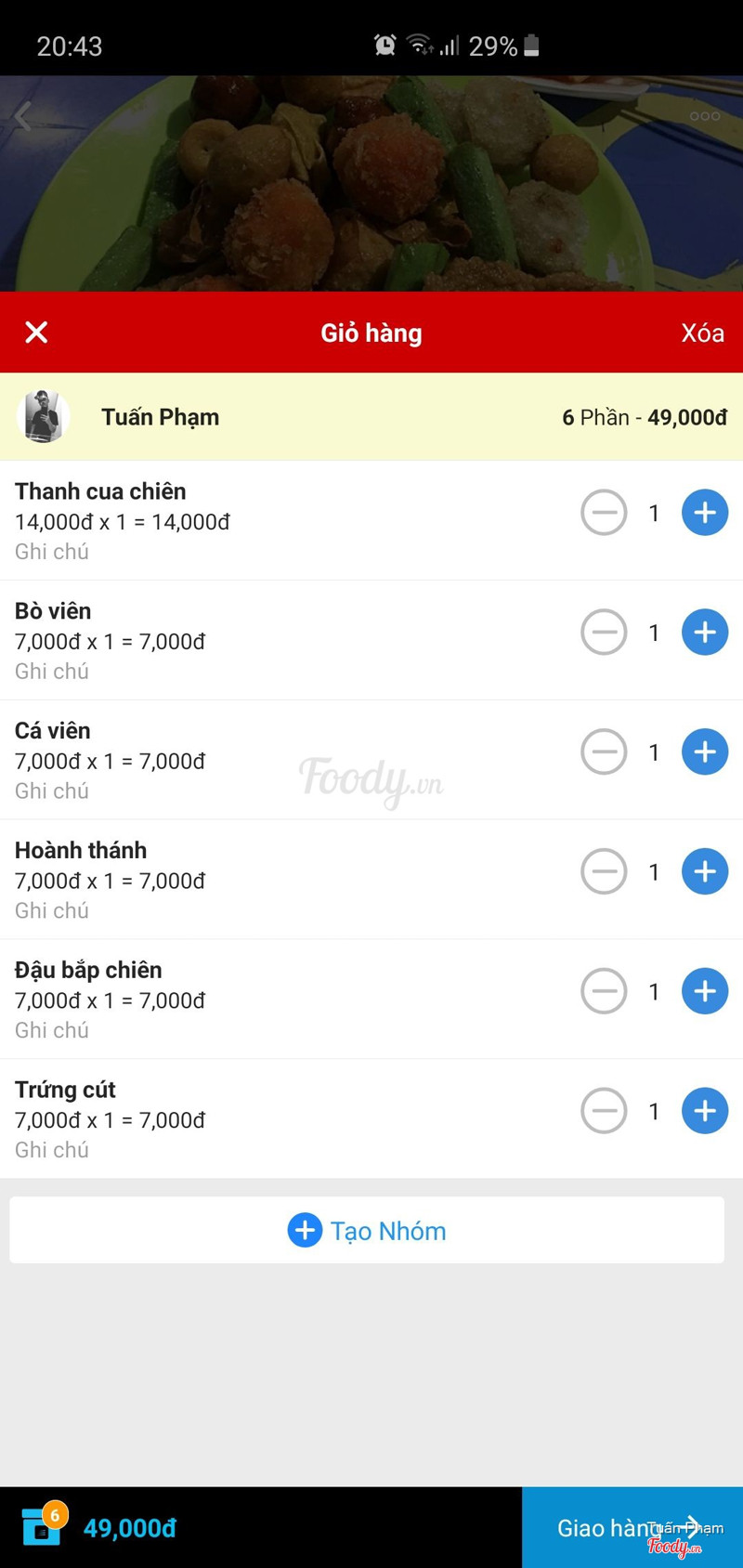 8.2Nghĩa - Cá viên chiên - Đường số 20Lâu lắm rồi không ăn cá viên chiên mà buổi tối lười ra đường nên order trên foody về. Mình đặt 1 phần cá viên, bò viên, trứng cút, thanh cua, đậu bắp, hoành thánh chiên ăn khá là ngon, quán có cho thêm đồ chua làm rất là vừa miệng, chua chua ngọt ngọt, rồi thêm dĩa tương có cả tương đen, tương ớt, có cả hành phi trong tương nữa nha. Giá thì khá oke nhiêu đó mình nhập mã freeship thì còn 50K thoi. Tối đói mà mún ăn vặt thì nên thử quán này nha. ...Xem thêm