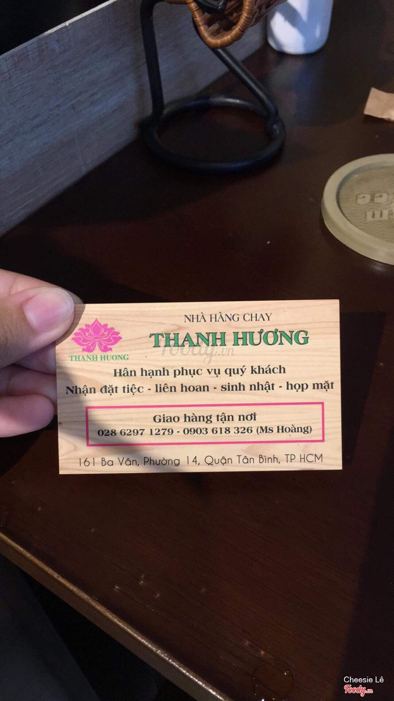5.0Nhà Hàng Chay Thanh HươngQuán đẹp. Đồ ăn bình thường. Giá cả okie. Có cái nắp lẩu ko rửa. Khi đem ra mình thấy nhớt ở cái nắp đậy những nồi lẩu trước. Quán khắc phục để tạo nhiều thiện cảm hơn ...Xem thêm
