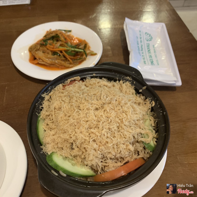5.6Nhà Hàng Chay Thanh HươngHôm nay mình đến quán nhân ngày mồng 1, khá đông khách nhưng vì đi khá trễ nên may là vẫn còn bàn. Mình có gọi cơm niêu chà bông Hàn Quốc, giá 60k. Món khá đơn giản: cơm chiên ở dưới, lớp chà bông để trên và 1 dĩa kimchi nhỏ để riêng. Niêu cơm khá nhiều cho 1 người ăn, mình nghĩ nếu gọi thêm món thì 2-3 người ăn nhẹ cũng phù hợp! Mình đọc review mọi người nói đồ ăn tươi, khách gọi mới nấu nhưng mình đoán đó là ngày bình thường vắng khách, hôm nay quá đông hay sao mà mình có cảm giác cơm này đã chiên sẵn, mình có nghe thoáng qua mùi hầm hầm ở vài muỗng cơm (có thể đó là vài miếng cơm chiên sẵn và để trưa tới tối lẫn vào). Mình không chắc lắm nhưng mình cũng không đánh giá cao chất lượng thức ăn ở mức giá 60k. Nhân viên phục vụ không tận tâm lắm. Chắc là do hôm nay đông khách, cuối ngày nên các em mệt và không còn sức để nhiệt tình với khách nữa. Dù không đáng để trách móc gì nhưng tất cả mọi thứ khiến mình không có nhiều cảm tình với quán! ...Xem thêm