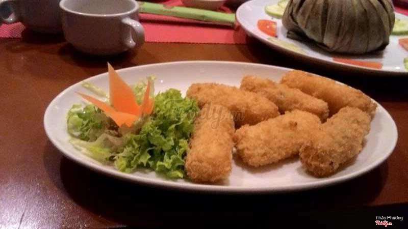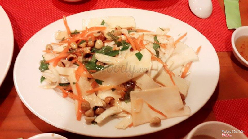 5.8Tạm được-Đi ngày lễ,buổi tối 4 người hơi đông nên ra món chậm. -Miến xào nấm:sợi miến to,có nhiều loaki nấm như đông cô,kim châm,...xào với hẹ,ăn cũng được,dĩa rất bự 4 người ăn là vừa. -Gỏi củ hủ dừa:ăn chung với bánh phồng kèm nước mắm,chua chua ngọt ngọt khá lạ miệng. -Cà ri sườn nấm:ngon,nước cà ri béo béo,sườn chay ăn cũng rất ngon,có bánh mì ăn kèm. -Cơm hấp lá sen:thơm mùi sen nhưng hơi lạc,như là ăn cơm trắng,khá nhiều đi ít người không nên ăn món này. -Nem cua bể:có ăn kèm bún,nem cua bể giống giống chả giò,bình thường. -Cơm rang rong biển:thơm,thố bự. -Trà sữa:hơi ngọt,mùi lạ lạ -Không gian trong phòng tầng trệt nhỏ,hẹp,có máy lạnh vẫn nóng như thường,bên ngoài có bán mì gói chay các loại và các đĩa CD về phật.Nhân viên không thân thiện cho lắm,có chỗ gửi xe,muốn trả nhiêu tiền gửi xe thì trả. ...Xem thêm