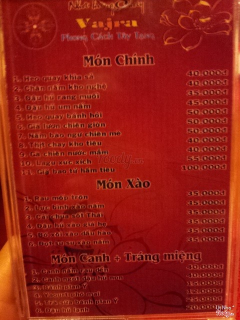7.0Nhà Hàng Chay Vajra - Lão TửĂn ở đây lâu rồi ...hôm nay mới trở lại quán này , Quán có bề ngang nhỏ , bây giờ tầng dưới để xe , ở trong có phòng ăn , tầng 1 là nhà bếp , Lên tầng 2 chia làm 2 phòng , phòng trước ngồi ghế cao , phòng sau ngồi bệt ... Không gian trang trí y hệt bên Vajra LH Phong vậy , phong cách Tây Tạng.. Thực đơn cũng phong phú lắm .. Món ăn nêm cũng ngon , vừa miệng ... Giá cả thì hình như bên này hơi rẻ hơn bên LHP chút , vì vị trí này thì giá vậy cũng dc.. Phục vụ bình thường... ****** Mình thích Vajra bên Lê Hồng Phong hơn .. ...Xem thêm