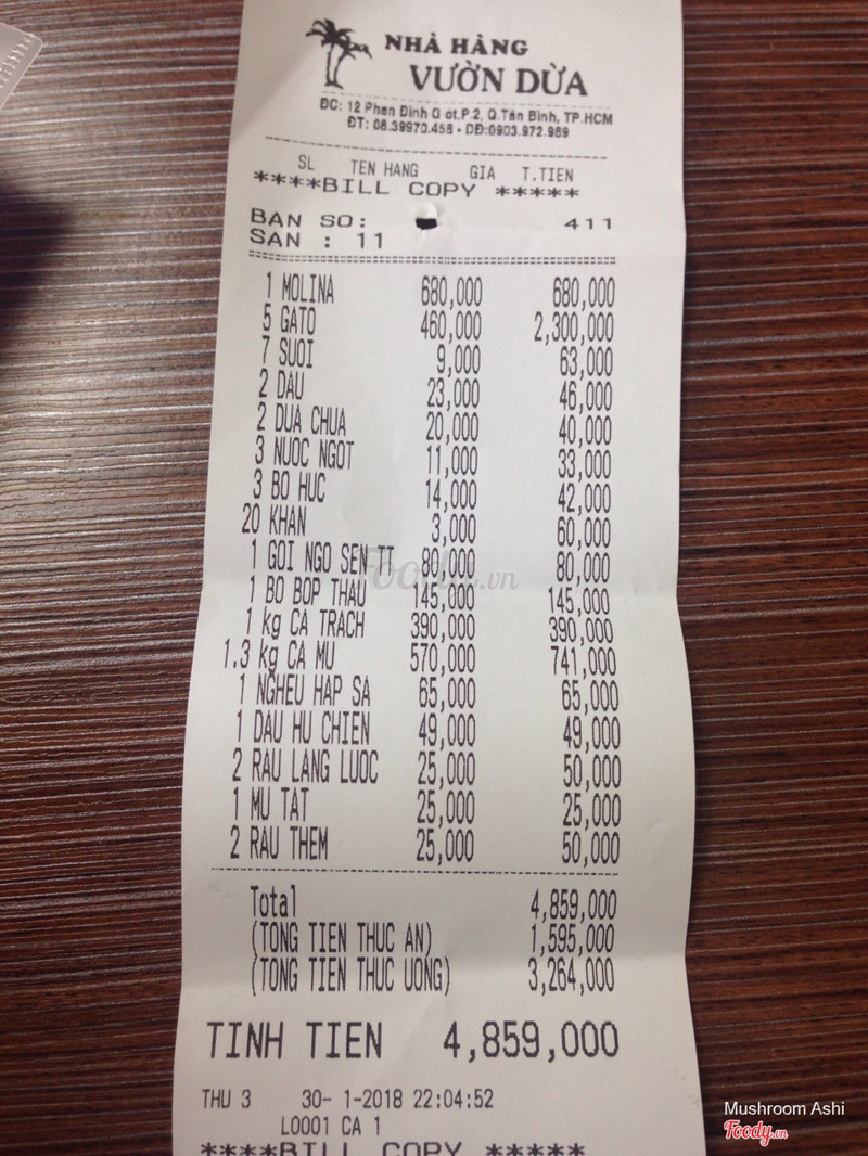 7.6Nhà hàng Vườn Dừa-- KHÔNG GIAN: quán khá rộng rãi và thoáng. Ngoài không gian ở chính giữa quán thì xung quanh có các phòng tiếp khách riêng nữa, nhưng thấy hơi bức bí, ngồi vị trí giữa thì thoáng hơn nhiều. -- CHẤT LƯỢNG: thực đơn đây khá nhiều lựa chọn món. Nhóm mình chọn 1 con cá mú 1,3kg chia làm 2 món cá sống và lẩu nấu chua. Cá sống thì giống sashimi vậy, cắt lát mỏng tang nhưng cuốn với cải đắng ăn khá lạ miệng, cá ngọt chứ không tanh ăn ổn, có điều xương lọc còn sót 1 chút ăn hơi vướng miệng. Cá mú nấu lẩu chua ăn cũng ngon không kém. Ngoài ra tụi mình còn gọi cá trạch chiên chấm mắm me, theo mình thấy thì chưa ngon lắm do chiên chưa giòn, bù lại được cái nước chấm mắm me ngon. -- GIÁ CẢ: tầm trung không quá cao so với các quán nhậu ở cùng khu vực. 7 người hết 1,5 tr tiền đồ ăn. Đồ uống do uống rượu vang nên hơi mắc xíu thêm 3tr nữa. Nói chung về đồ ăn thì chất lượng tạm ổn và giá không quá mắc. -- DỊCH VỤ: nhân viên thỉnh thoảng hơi lơ là nhưng nhìn chung thì thái độ vui vẻ. ...Xem thêm