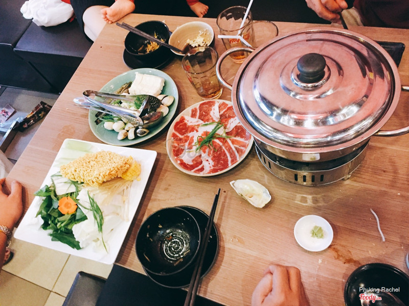 7.0NGON - Đồ ăn đa dạng nhưng phục vụ chậmMình mua vé buffet 147k chưa bao gồm VAT và nước. VAT + nước tầm 200k/người nhen. Vì là buffet nên ăn thoả thích nè, hết thì kêu tiếp. Đồ ăn đa dạng có lẩu, sushi, bánh xèo, thịt heo xiên và xúc xích nướng + 1 số món khác mình k nhớ nhen. Đồ nhúng lẩu có bò, gà, heo, mực, tôm, cá hồi, cá viên và các loại rau nấm. Điểm trừ lớn nhất là phục vụ chậm nè, đợi hơi lâu mới mang đồ ăn ra. ...Xem thêm