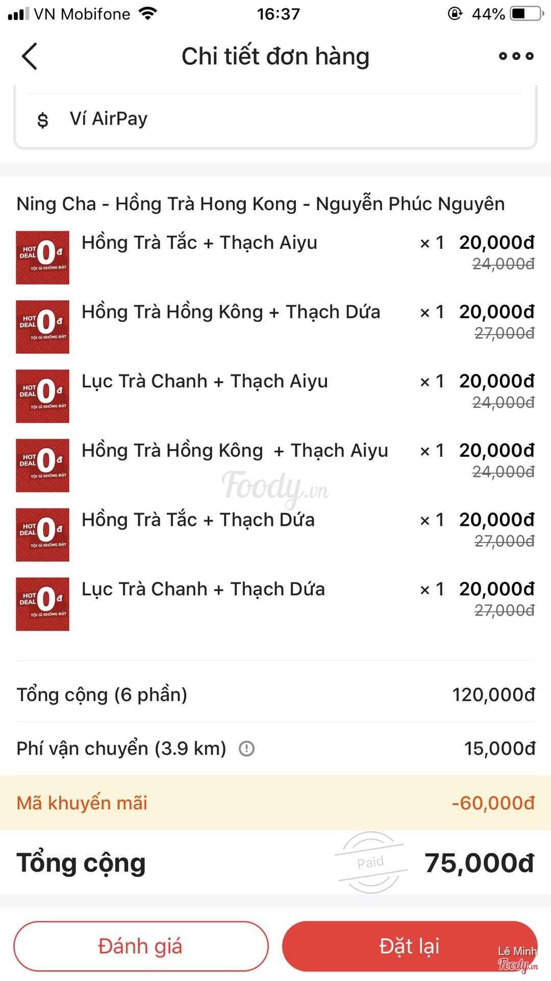 Ghi chú đặt bàn