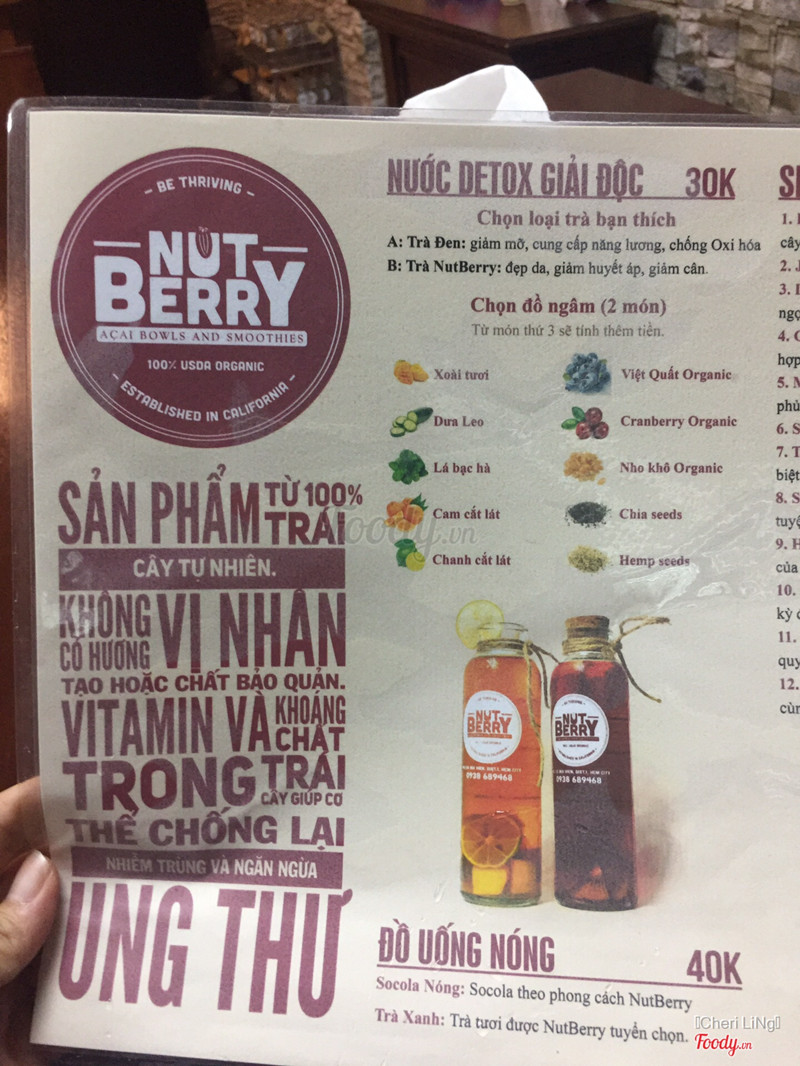 7.8HealthyDạo này mê đồ ăn đồ uống dinh dưỡng nên thấy quán nào bán thì cũng lân la thử xem.Quán nằm ngay khu phô đi bộ nên đa phần nhiều khách nước ngoài biết,khách việt chưa biết nhiều. Quán có acai bowl làm từ trái dâu acai cô đặc và các loại hạt, mình đoc báo nghe nói ăn 1 phần này là vừa no mà cũng đủ chất dinh dưỡng rồi, có thể giảm cân dc đó. Vị dâu acai chua chua ngọt ngọt, các loại hạt béo bùi ăn ngon mà ko ngán. Phần ăn đựng trong hũ xinh xinh, ăn xong dc tặng hũ luôn đó lợi chưa Đầu tiên mình chọn loại ngũ cốc chính (hạnh nhân hay vani Pháp), chọn trái cây tươi, chọn 2 loại nguyên liệu đi kèm (hạt chia, hướng dương, đậu phọng, hạt dẻ cười.....) rùi chọn siro là xong^^ Giá: 80k/ hũ to, nhân viên tư vấn là tuần ăn tầm 3 ngày là đủ Quán còn có nước detox làm từ hoa hibiscus hay trà đen. Món này thì ko ngọt đâu. 1 bình bao gồm 2 loại dùng kèm: xoài, cam, nho khô, hạt chia, bạc hà, dưa leo.... Cái này cũng được tự chọn. 30k/bình khá ok Hy vọng quán sẽ được nhiều người biết, nhất là những ai quan tâm đến sức khoẻ ...Xem thêm