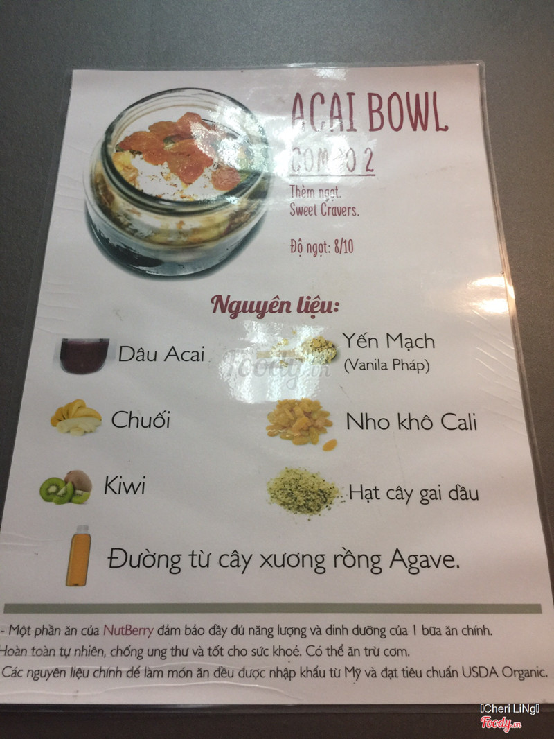 8.6Món kem trái cây Acai Bowl mới khá ngon miệngĐồ ăn: Đi khắp Sài Gọn để tìm đồ uống detox ! lại lạc vào quán này ăn kem Acai. Món này độc, quán đặt tên là Acai Bowl theo đúng phong cách của tụi Mỹ. Dâu Acai ngọt tự nhiên, xốp, mùi rất thơm. Ăn chung với yến mạch nói chung là lạ miệng và ngon. Nước Detox bằng trà đỏ cũng good. Quán xá: Đậu Xe hơi khó khăn, mình thích gọi order tận nơi hơn. Hình như quán cũng chủ ý bán online, tại chui vô hẻm hơi khó kiếm. Lời Khuyên: gọi order rồi chọn đồ ăn qua phone. kem acai này để tan chút xíu ăn đã hơn nhiều. ...Xem thêm