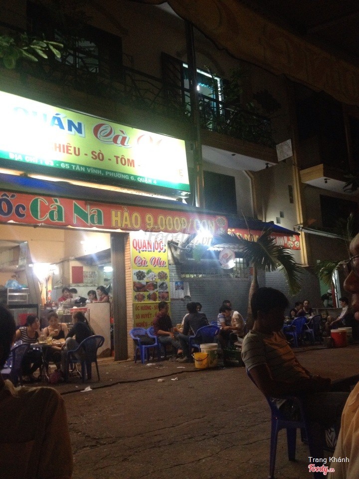 7.8Ốc cà naQuán khá gần nhà, nằm trên đường Tân Vĩnh quận 4. Quán có bàn ngoài sân, trong nhà, trên lầu nên khá rộng rãi. Gửi xe trong hẻm cụt cách đó khoảng 5m, có người trông và có thẻ nên khá an toàn. Không biết ngồi trong quán thế nào chứ ngồi bàn ngoài đường thì nóng quá, 1 phần do không lắp thêm quạt ngoài quán, 1 phần do tấm bạt chắn gió nên ngồi ăn khá nóng. Món ăn thì một số loại ốc theo thời giá, hào thì hiện tại là 9k/con, các dĩa ốc thì 30k-60k, chấp nhận được giữa lòng thiên đường ốc quận 4 thế này. Mình thấy rau muống xào ốc giác không ngon lắm, chưa thấm vị, ốc giác không dai giòn gì cả, cắn vào thì bở ngay. Sò huyết xào me ngon, nước me xào đậm đà dù hơi chua, sò huyết tươi, ốc cà nà rang muối ớt thì chỉ mặn chứ không cay gì cả, chem chép xào tỏi ngon. Nghêu hấp thái khá ok, nóng rất lâu, nước thái không chua nhưng cay, đậm đà mùi sả, húp rất thích, nghêu sạch, mập. Không thể quên kể đến hào nướng phô mai, hào tươi, to, phô mai béo khá ngon. Có cả hào sống, hào nướng mù tạt để ai thích lạ thì dùng thêm. Để bổ sung tinh bột cho bữa ăn ốc thì nhóm mình gọi thêm 2 dĩa mì xào bò. Dĩa khá đầy đặn, nhiều mì, nhiều rau, bò cũng kha khá, đủ ăn no. Các loại nước ngọt thì 10k nhé, bò húc 15k, Các loại bia thì theo thời giá nên mình không rành, đang lúc chạy chương trình bia San miguel light nên có PG giới thiệu khuyến mãi gì đó. Nói chung giá cả tốt, món ăn thì nhiều món ngon, vài món chưa hợp khẩu vị lắm, phục vụ nhiệt tình, gần nhà nên sẽ còn quay lại ...Xem thêm