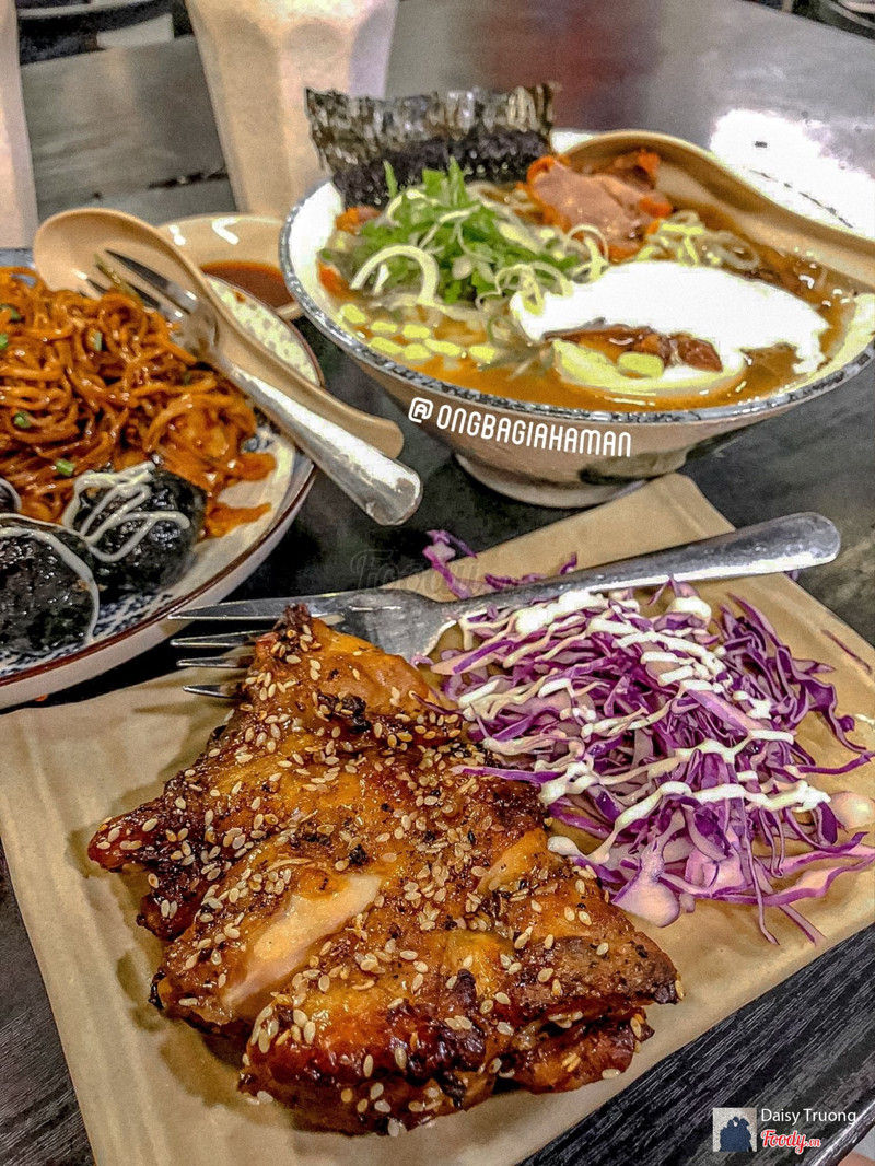 7.6OSAKA - MÌ RAMEN & CƠM THỐ NHẬT BẢNThèm ramen mà túi ko rủng rỉnh lắm, tìm khắp insta thì ra đc quán này. Quán nằm trong đường nhỏ, quán cũng nhỏ, mà khách đông quá trời. Menu quán cũng đa dạng lắm mà giá chỉ tầm 45-55k à. Phần tụi mình ăn là Ramen Trộn & Thịt Viên (45k), Osaka Ramen (55k) với Gà Quay Sốt Teriyaki (30k). Quán đông mà đồ ăn ra cũng ko bị lâu, hình thức nhìn đẹp mắt nữa, do mình đợi 3 món lên chung để chụp hình này nọ nên lúc ăn có hơi nguội tí. Ramen trộn nhìn có vẻ đậm đà nhưng với mình là hơi nhạt, ăn chung với kimchi, lại có thêm mấy miếng tỏi hơi bị to mà lại còn sống nên hăng quá trời luôn, đc cái thịt viên cuộn rong biển ngon, ko bị khô. Phần Osaka Ramen có nước dùng ko quá đặc sắc nhưng nêm nếm rất vừa miệng, sợi mì có hơi ngán nhưng với tầm giá này mình thấy cũng hài lòng. Phần Gà Quay thơm, thịt ko quá khô nhưng nhưng do tụi mình hơi no rồi nên bị ngán 1 chút. Hôm mình đi thấy mấy bạn nhân viên cũng dễ thương, gửi xe thì do quá đông nên tụi mình phải gửi sâu trong hẻm, mất 5k phí 😬 ☀️ Instagram: @ongbagiahaman ...Xem thêm