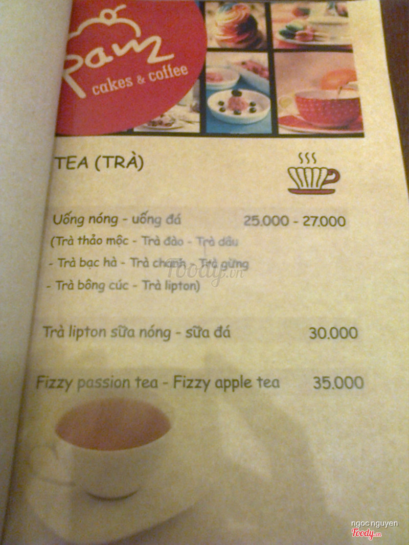 6.2Giá bình dân, rất hợp lýMình mua deal Combo 2 phần bánh Crepe/ Tiramisu + 2 kem tại PAM Cakes & Coffee trên cungmua, hiện vẫn còn. Lần đầu tới thì quán đóng cửa dù để bán tu 10am. Lần thứ 2 tới mình gọi đt trước cho chắc ăn. Tới noi thì khá vắng, tầng trêt khá luộm thuộm, ko thich hop để làm 1 quan cafe cho lắm...Mình ko gọi thêm nước mà chỉ an bánh trong com - Bánh tiramisu : lúc ăn xong mình van ko bít là tiramisu gì....hỏi nhan vien thi moi biet là trà xanh...thật lòng là nó có 1% vi trà xanh mình chet liền đó. D9úng la bánh hoi bi chua 1 tí teo, ăn cũng ok, giá 25k thì cung được. - Bánh crepe : lạ và ngon, bánh crepe cuộn tròn lai cắt khúc ra. Rat đáng để thử - kem : cũng không có gì đac biet lắm. Nói chung là quán chỉ co 2 loại bánh thì phải, banh crepe thì nen thử còn tiramisu thì neu bạn mún thu tiramisu hoàn toàn khác lạ thì thử cung duoc :)))) Hy vọng quán xem lại cách bo trí, tới 1 quán cafe mà khung cảnh ko đep thì ít ai ghé vô. ...Xem thêm