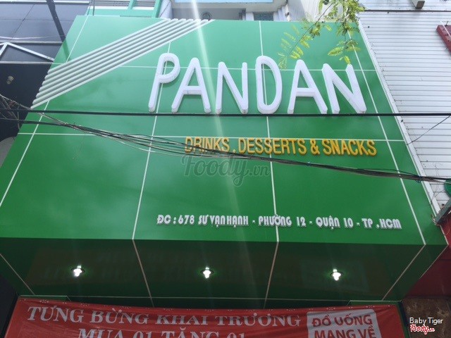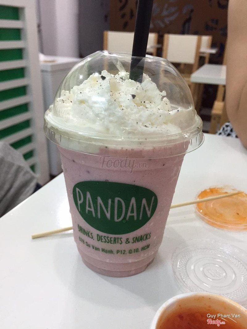 8.0Giá bình dân, rất hợp lýCuối tuần đi siêu thị BigC ngang qua Sư Vạn Hạnh vô tình nhìn thấy quán Pandan mới khai trương đang có chương trình khuyến mãi mua 1 tặng 1 nên quyết định cùng nhỏ em ghé vô luôn. - Vị trí: địa chỉ 678 Sư Vạn Hạnh ( kế bên Karaoke KT) -> địa chỉ dễ nhớ và số đẹp :) - Thực đơn: phong phú có nhiều loại thức ăn nhẹ và nước uống như ice blended trà/ trà sữa, cá viên, cá cốm,.. mình thích cái ly ở đây! Nhìn dễ thương lắm. Vị khá hợp với mình nên cũng rất thích - Nhân viên: vui vẻ, dễ thương, phục vụ nhanh lắm. - Không gian: hơi nhỏ nhưng ấm cúng, trang trí cũng dễ thương, màu xanh nhìn rất mát. ...Xem thêm