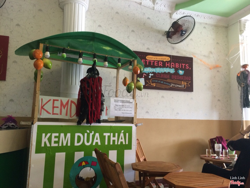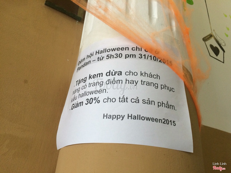 7.2Pandan - Drinks Desserts Snacks - Sư Vạn Hạnhhehe đang ngồi ở đây. quán này nằm sát bên quán karaoke K-T màu xanh lá chuối cũng khá là nổi. mở cách đây chắc cũng mấy tháng ròi mà giờ ghé thử. không gian cũng thoáng mát có điều hơi tối, bàn ghế gỗ thấp thấp nhìn cũng dễ thương. nhân viên phục vụ cực kỳ đáng iu lun, dễ thương lắm lắm. đồ ăn thức ún thì cũng ok. giá cả tạm ổn. hum nay quán đang có chương trình khuyến mãi tặng kem dừa cho khách hàng hoá trang halloween và giảm 30% toàn menu, nhưng mà từ 5h30 lận. chắc ngồi đây tới tối để đc giảm giá quá kakaa à hình như quán này có pà kon họ hàng với quán cow express thì phải, thấy trên khăn lạnh có in cow express. quán cow express là quán bít tết iu thích của mình hehe ...Xem thêm