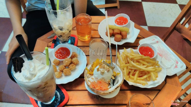 7.8Đồ uống OK + Giá hợp lý ... ^^Thấy quán mới nên mình ghé uống thử, mọi thứ Ok, mấy bạn nhân viên thấy lúc nào cũng vui vẻ và nhiệt tình nữa. Mình uống trà Lipton, vị đậm đà, với có miếng cam giúp tăng mùi vị nữa, thơm thơm, đang trưa nắng mà đc 1 ly thế này thì thích phải biết... ^^. 2 đứa kia đi chung thì kiu đá xay Rasberry và trà sữa Thái. Do mải nói chuyện nên 2 ly tụi nó hêt lúc nào ko biết ... ^^. Nói chung quán có vị trí dễ tìm, do kế bên KT, địa chỉ là 678 nữa, phục vụ vui vẻ, dễ chịu ... ^^ ...Xem thêm