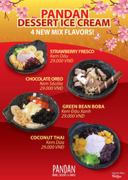 6.4Pandan - Drinks Desserts Snacks - Sư Vạn HạnhĐi có 2 đứa mà gọi như đi chục đứa. Tuy nhiên chẳng có gì ngon cả. Em gái mình gọi trà sữa thái hơi nhạt. Kem dừa tệ. Trà sữa trân châu + 3 loại thạch thêm cũng đc. Nhân viên để thương. ...Xem thêm