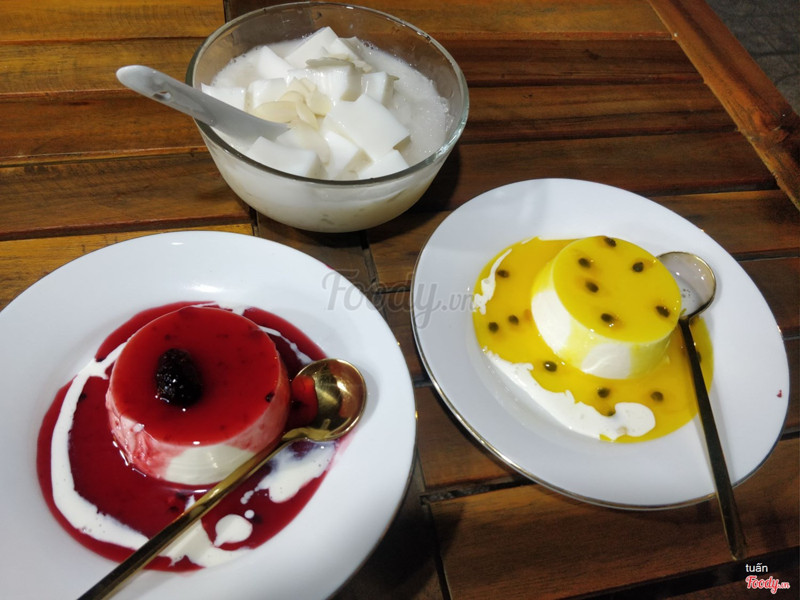 8.4Panna Cotta Lắk LắkQuán này nên ăn panna cotta hoặc bánh flan mini giá tầm 23k -28k. 1 phần pannca cotta là 1 cái size cũng vừa vừa ăn, vị siêu béo chất lượng mình thấy ăn tầm 2 cái là ớn nhen. Vị thì sẽ có 3 vị khác nhau như màu đỏ là có mứt dâu, màu vàng chanh dây, màu đen vị choco. còn bánh flan mini sẽ 1 phần có 2 cái đúng kiểu size xì trum luôn. Cách bài trì ăn tại chỗ mí chiếc panna cotta này đẹp mắt còn mùa mang về thì chắc để trong hộp mình chưa ăn mang về bao giờ nên ko biết. Mà cảm nhận là kiểu ngồi ăn vỉa hè mà dĩa với muỗng xịn sò lắm như kiểu ăn nhà hàng vì xài muỗng vàng )) Muốn ăn giao tận nhà thì trên Now mở bán từ 11h-22h còn ăn tại quán thì tới 18h mới có chỗ ngồi để ăn nhé. ...Xem thêm