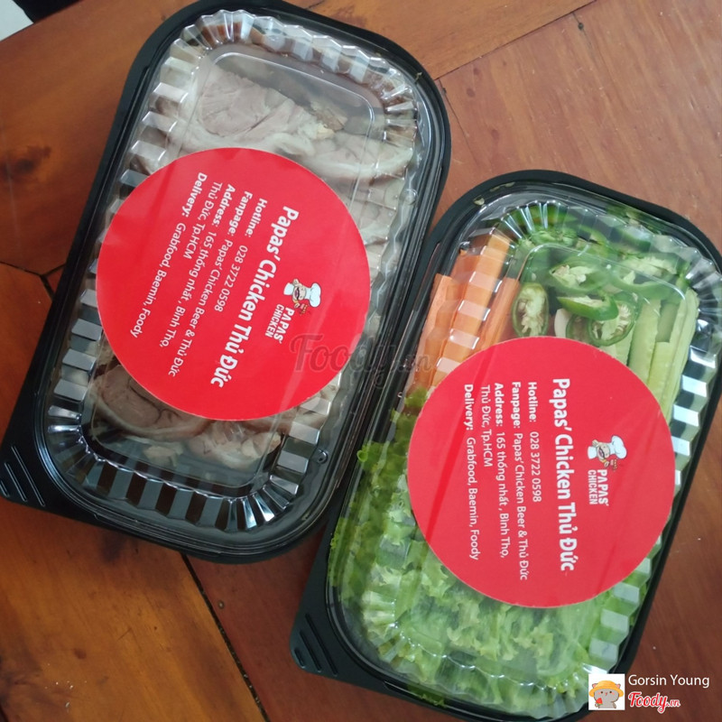 7.4Papas' Chicken & Beer Thủ ĐứcHôm nay gọi phần chân giò hấp vì bỗng dưng thèm. Bao bì nhỏ gọn hơn xưa, rất ưng. Thịt vẫn ngon thơm và béo. Rau tươi nhưng hơi ít và k có lá mè như hồi xưa nên hơi hụt hẫn. Nước chấm cũng ít, ăn còn thịt nhưng lại hết nước chấm nên khúc sau toàn ăn thịt không nên hơi ngán. Giao hàng nhanh. ...Xem thêm