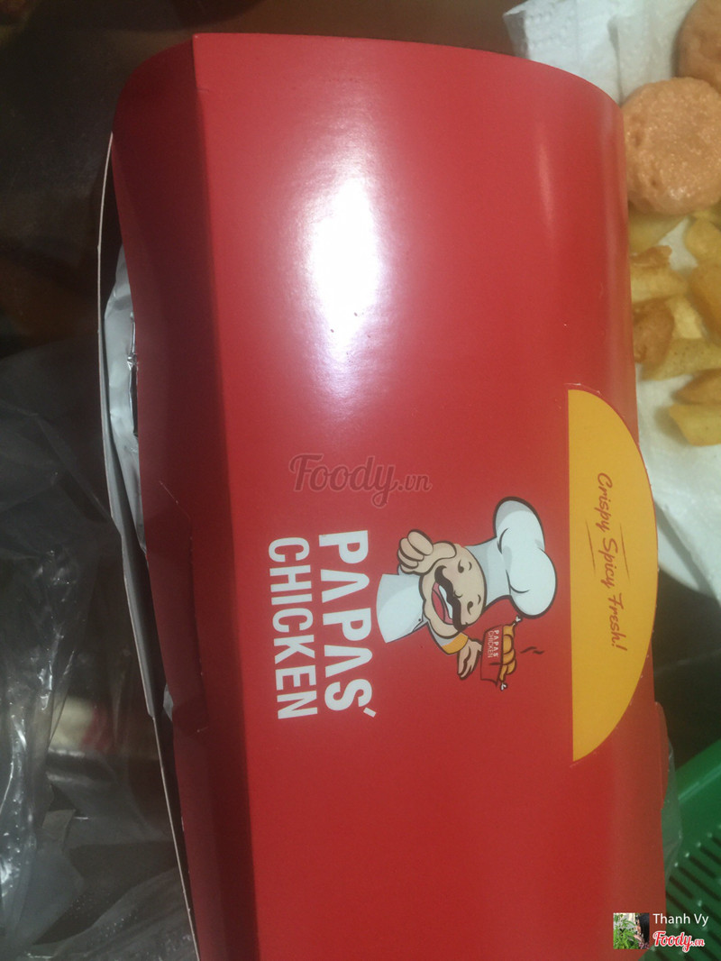 1.8TỆ HẠI! QUÁ TỆ HẠI!Mình ăn Papa từ rất lâu rồi nhưng cách đây 1 năm mình đặt ở các chi nhánh khác bị đau bụng 2 lần nên ngừng ăn Papa. Tối nay sau khi xem phim HQ, thèm gà quá mà không còn quán nào mở vì 21h45 rồi chỉ còn Papa gần nhất là quán này mình đặt đại xem có cải thiện chất lượng không. Thật không thể tưởng tượng nổi! Một vùng đầy dầu mỡ, vết đen bám đầy trên phần da bên ngoài như là cặn dầu chiên cả ngày bám vào vậy. Mình cố gạt phần đen đó ra nếm thử thì ôi thôi không 1 mùi vị gì hết! CHÍNH XÁC LÀ KHÔNG CÓ MÙI VỊ GÌ HẾT! Mình đặt gà chiên nước tương vì đây là món mình thích nhất ở pâp nên mình rất rõ mùi vị nó phải ra sao. Mình bỏ hết cả phần gà lun. ...Xem thêm