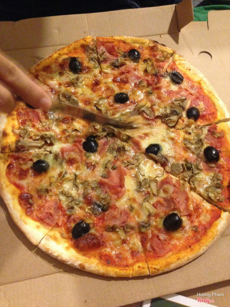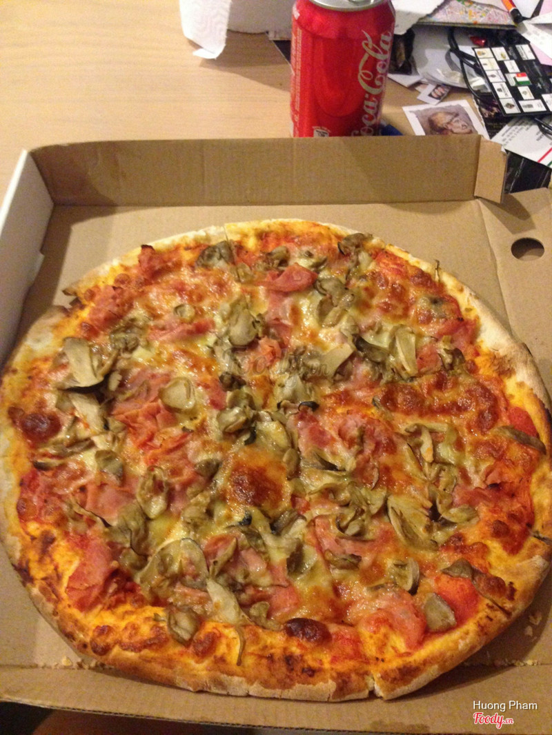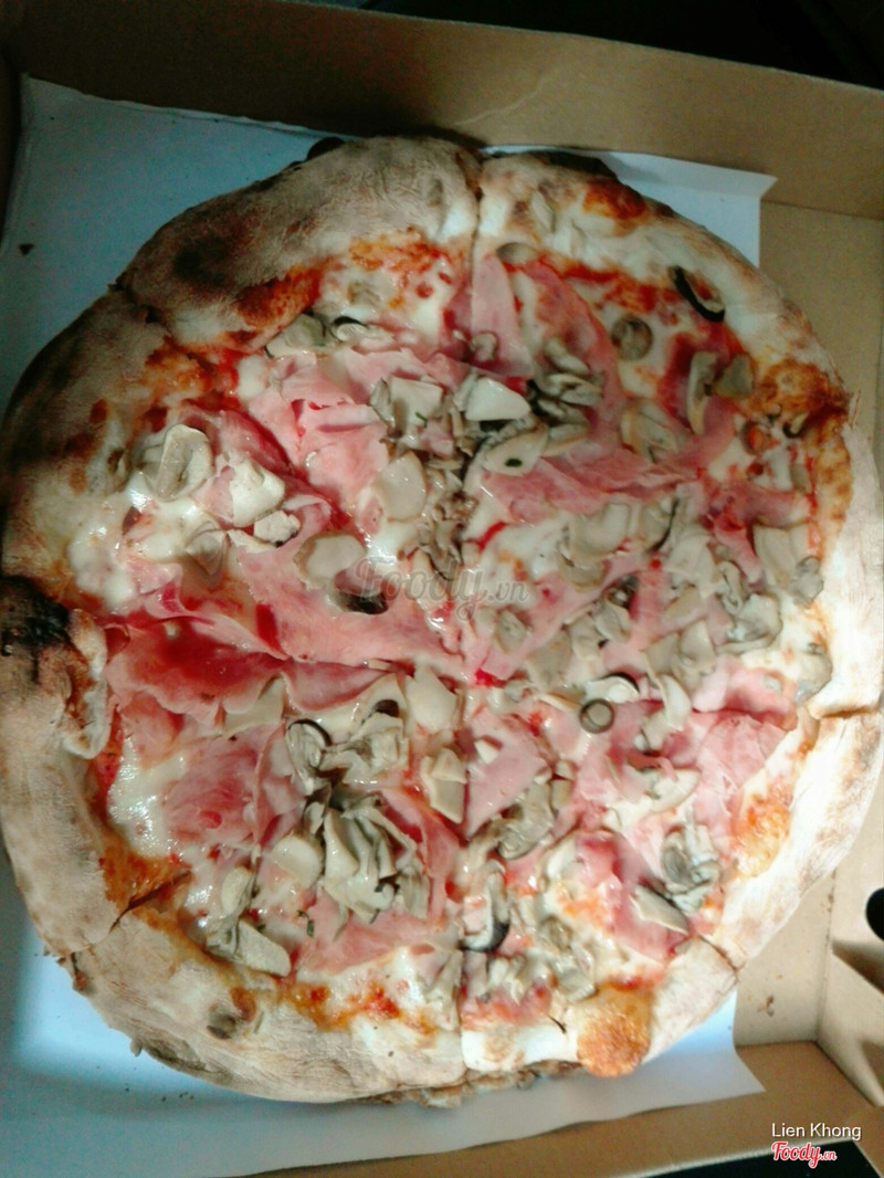 6.6Prosciutto e funghi không ngonHôm đó dự event bên Saigon Outcast, giờ nghỉ giải lao đặt pizza qua Deliverynow. Mình order pizza prosciutto e funghi, giá là 180k (chưa tính ship Delivery). Size bánh 8 miếng, khá to, topping chủ yếu là ham và nấm, ăn hơi bị ngán, đế bánh mỏng. Nói chung là cái bánh pizza mình gọi ăn hổng có ngon, bạn nào muốn thử pizza ở đây thì nên chọn hương vị khác chắc sẽ ok hơn đó. ...Xem thêm