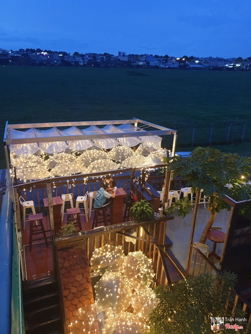 Quán cũng khá xinh, ban ngày ngắm đc máy bay ngay đường băng, ban đêm lên đèn chắc sẽ đẹp hơn. Bạn nào thích chụp ảnh thì nên đi ban ngày để chụp với mb. Mình gọi cf trứng, uống cũng ok nhưng hơi ngọt, quán đông, và ngồi bên ngoài hơi hanh và nắng, ngoài cái view chụp với mb ra thì hog có gì đặc sắc lắm 😂 nước giá hơi cao.Xem thêm- Đây là nhận xét từ Thành Viên trên Foody, không phải từ Foody Corp. -