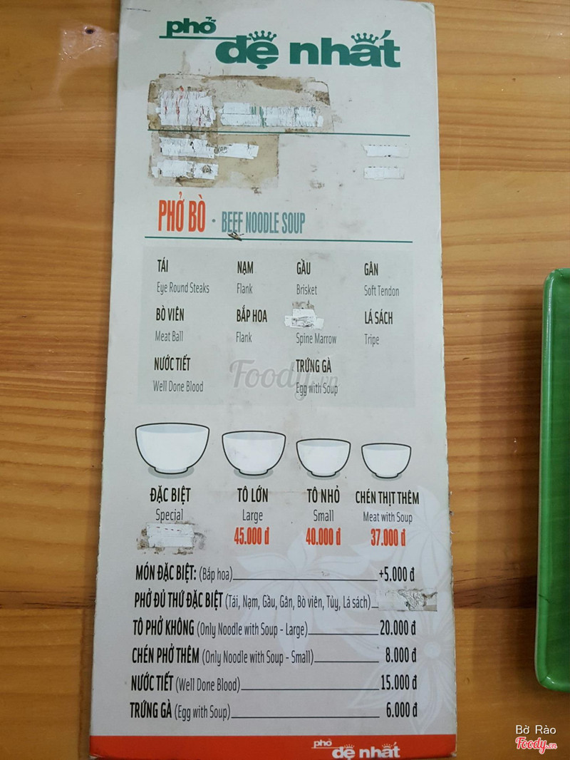 Tên này làm mình liên tưởng tới phở Đệ Nhất Võ Tuấn nên vô ăn thử. + Không gian: bàn ghế lịch sự, rộng rãi, khá mát mẻ. Nhìn cũng sạch sẽ, vệ sinh. Có cái menu thấy rất giống bên phở Hiền, ko biết là thế nào? + Món ăn: phở ăn được, nước lèo thanh, đậm đà, bò mềm, phở chưa thơm lắm. Bò viên bình thường, bắp hoa cũng ngon. Nước tiết hột gà cũng ok. Nói chung ổn chứ không xuất sắc lắm. + Phục vụ: nhanh nhẹn, nhiệt tình, khá là tốt. + Giá cả: một tô cũng nhiều bánh, thịt. Giá cũng cỡ các quán khác nên thấy giá này vậy là bình thường. ...Xem thêm