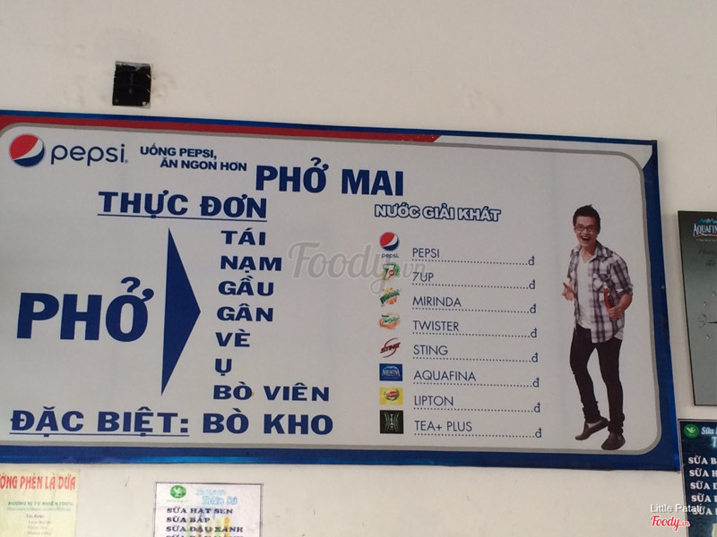 4.0Phở Mai - Đường 11Không ngon, mắc Giá cao so với Tô phở, 35k /tô , nước ít nhìn không hài hoà, mùi vị không đặc biệt vì cũng có mùi của các gói gia vị, ăn cũng được nhưng giá đó là mắc. Nước trà đá hơi chua, có cảm giác như trà cũ hoặc rửa bình không sạch, mà trà cũ qua đêm uống rất nguy hiểm. ...Xem thêm