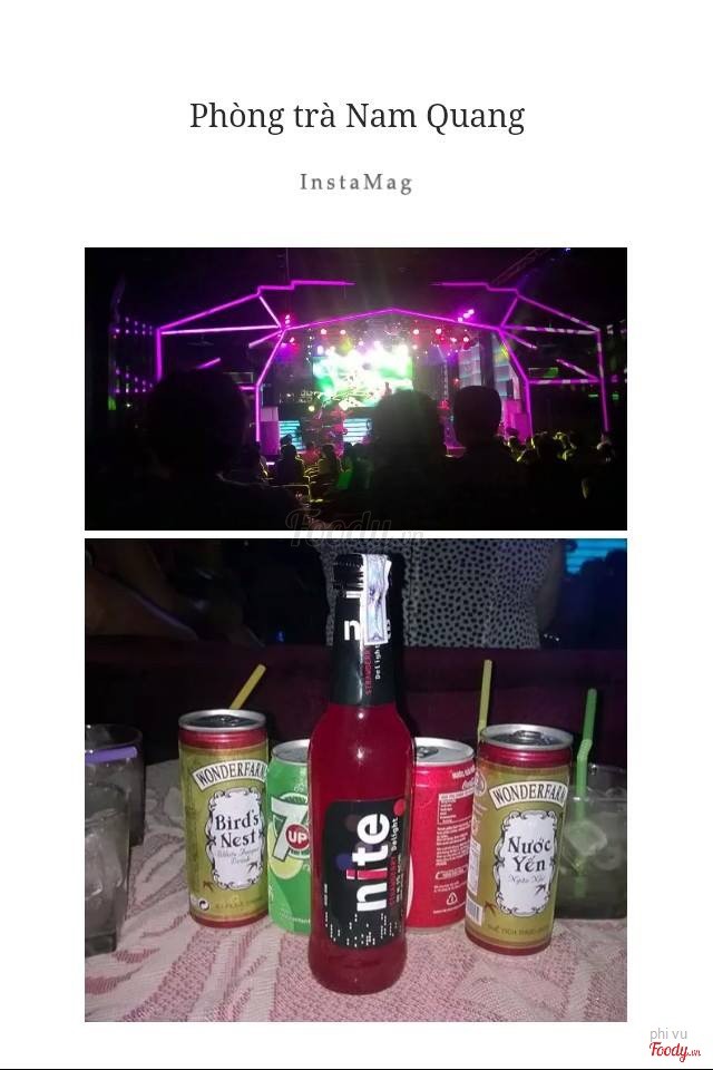 6.6Phòng Trà Cafe Nam QuangĐược bạn tặng cho vé đến đây xem mà mình quá lười đi, đắn đo lắm mới đến xem chị ca sĩ quen thân biểu diễn. Bới tình ngay mà nói, đó giờ mình k thích thể loại coi hát hay đi phòng trà. Phòng trà nằm ngay ngã tư Võ Văn Tần và CMT8 nên hầu như ai cũng biết rồi. Không gian bên trong to và rộng, trang trí cũng khá lung linh hoành tráng, như 1 sân khấu mini. Giá ở đây 250k/người, bao gồm 1 thức uống như nước suối hay nước ngọt có ga, còn muốn uống nước ép hay sinh tố thì bù thêm 60k. Phục vụ quá chậm chạp, nghe đến mấy lượt ca sĩ hát mới mang ra, mà phải gọi đi gọi lại mấy lần luôn. ...Xem thêm
