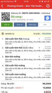 5.0Giao đồ ăn không đúng đơn hàngMình đặt 6 cuốn tôm thịt mà shop lại giao cho mình 3 cuốn tôm thịt với 3 cuốn tai heo, không biết có phải quán hết đồ cuốn tôm thịt nên nhét cho mình 3 cuốn tai heo này không mà nhà mình không ai ăn tai heo được nên coi như phải bỏ 3 cuốn đi. Nếu lộn 1 cuốn mình còn tạm chấp nhận được chứ đằng này giao lộn tới 3 cuốn. Một cuốn có giá 6,400d thì nhìn cuốn tai heo so không đáng với giá tiền một chút nào. Lần sau nếu quán hết thì hy vọng quán báo lại cho shipper để mình đặt gỏi cuốn khác mà mình ăn được, chứ lần trước mình đặt ăn ngon nên lần này mới đặt lại. Hy vọng quán rút kinh nghiệm! ...Xem thêm