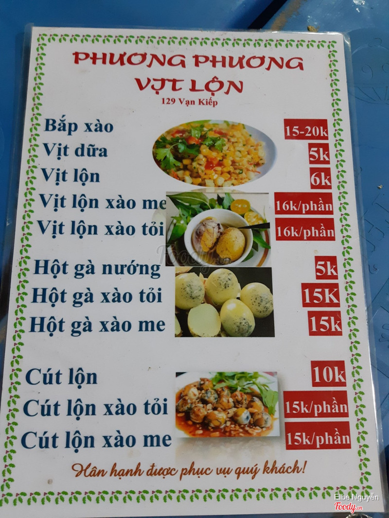 7.0Phương Phương - Vịt Lộn & Ăn VặtQuán nhỏ quen đường Vạn Kiếp đi ngang hơi bị khó thấy. Vịt lộn con vừa ăn, muối pha chưa ngon lắm. ...Xem thêm