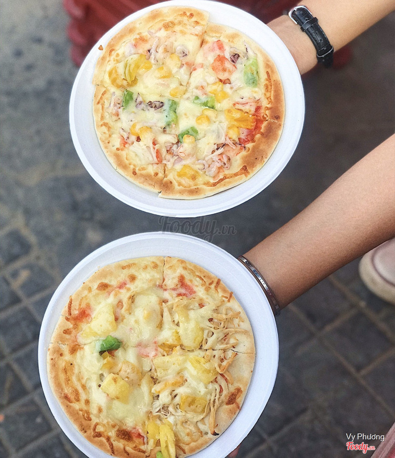 7.8Pizza giá rẻ cho ngày chậm lươngVào mấy ngày sếp buồn sếp delay ngày phát lương mà lỡ thèm pizza quá nhưng trong ví còn 50k thì đi phải làm sao bây giờ? Hehe đừng lo vì đã có quán pizza giá rẻ nha. Vị trí: ngày vòng xoay, kế Alo tea và trước tiệm mắt kính. Ăn ngoài trời nhưng mình thấy không bụi lắm ngược lại khá thoáng mát và sạch. Giá bình dân mà chất lượng xứng tầm. Rất đáng thử. Mình ăn 2 pizza size 14 như hình với 1 pizza size 22 ( quên k chụp :)) ) với 2 chai nc ngọt tổng cộng là 140k mỗi đứa 70k thôi mà no quên lối về. Mình thấy nhìn chung ok, đế bánh đương nhiên không xịn như pizza hut pizza inn,... nhưng với mức giá 35k / bánh thì không thể nào chê nha. Rất ngon! Bánh thơm mùi phô mai, đồ ăn cũng nhiều chứ không teo héo keo kiệt. Đế bánh mềm chứ không cứng chai, viền bánh giòn. Mình ăn 3 loại - Pizza hải sản ( số 4 ) 🦐 - Pizza hawaii ( số 5 ): cái này mình highly recommend 🥰 - Pizza gà ( số 4 ): cái này mình thấy ăn hơi chán 🤷🏻♀️ Lần sau mình sẽ thử ăn loại full cheese 👌 Nói chung với mức giá đó thì như vậy là QUÁ OK nha. Bạn nào còn phân vân thì cứ thử tới ăn xem sao nhen. ...Xem thêm
