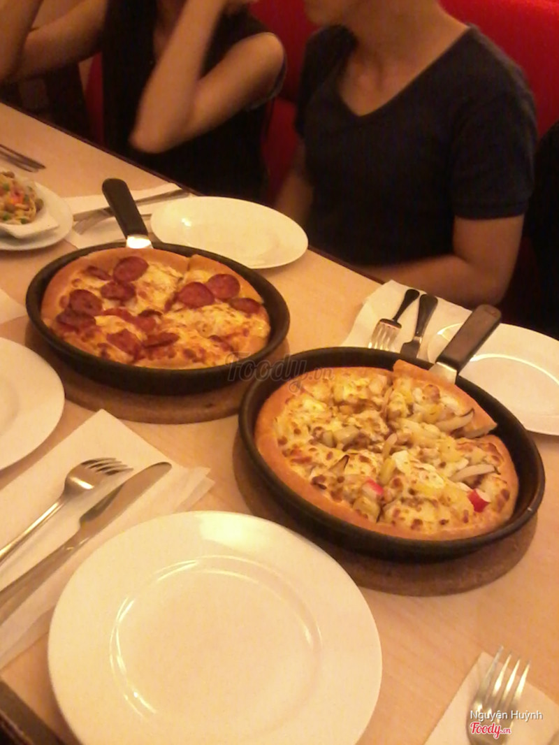 7.0NgonCứ thèm pizza là lại đến quán này. Cũng như nhiều chi nhánh khác của Pizza Hut, mình thấy nhân viên ở đây đa phần là lịch sự và quan tâm khách hàng. Phục vụ cũng nhanh nhẹn và chu đáo. Pizza ở đây được cái đế dày cui luôn, đúng sở thích của mình. Tùy vào từng loại bạn order nhưng mình thấy cứ bánh nào mà có phô mai là ăn phô mai ngập mặt luôn ấy. Mình thích ăn nhân hải sản nhất, có đủ các loại, mực với cái thứ cá gì đấy xào thì phải, hải sản mà có cả thịt nữa cơ. Nói chung là ăn no và ngon. ...Xem thêm
