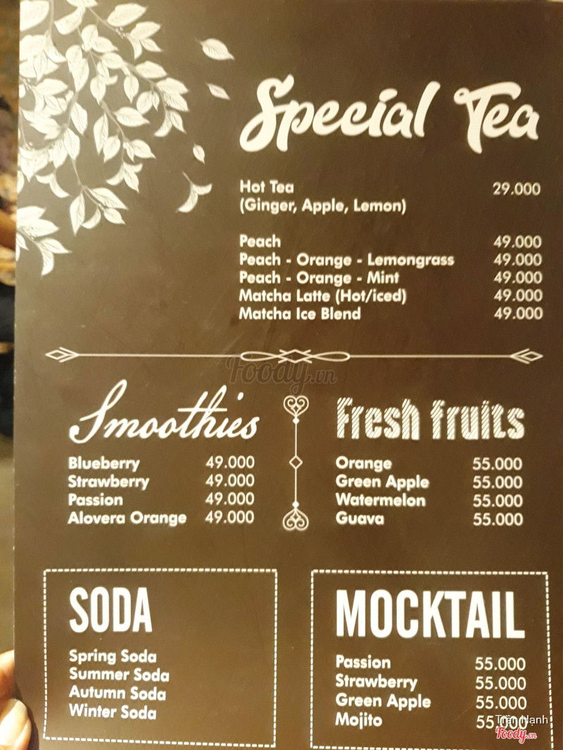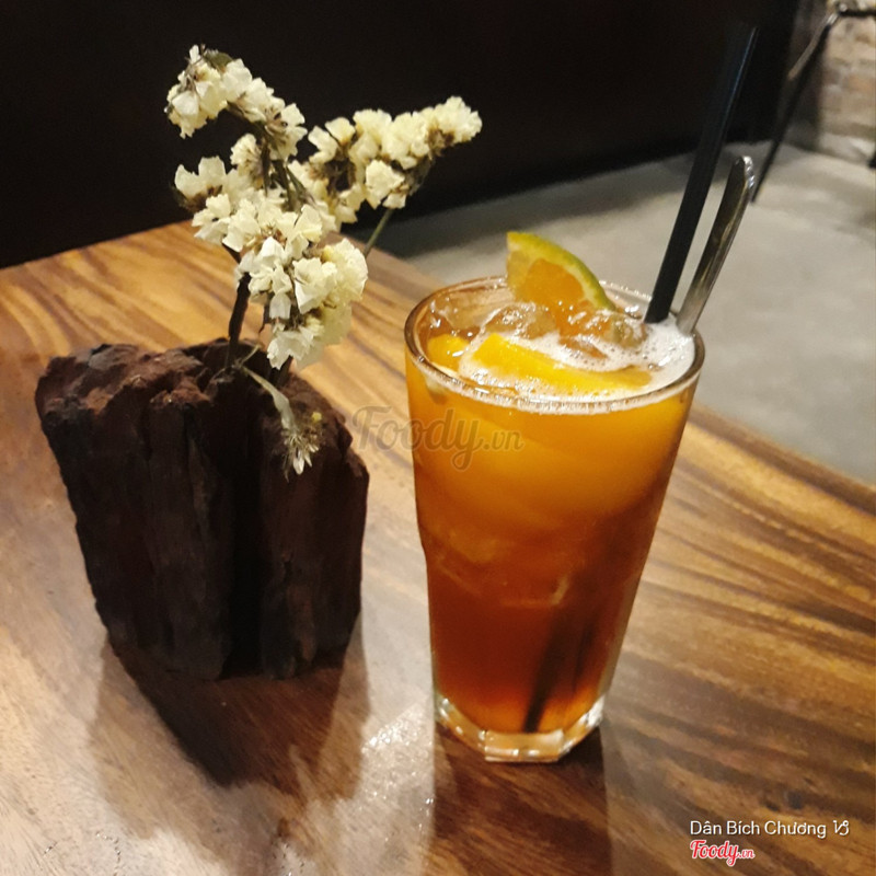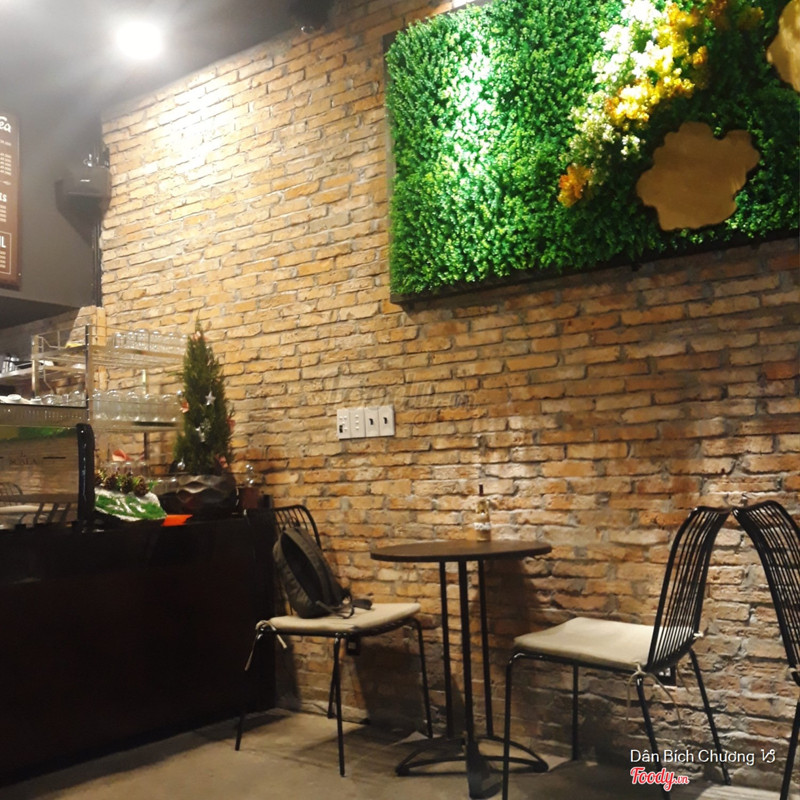 1 quán nhỏ nhỏ ở khu Trần hưng đạo, từ hướng Nguyễn thái học đi vào thì qua khỏi Đề thám chút là thấy quán bên tay phải. Vị trí gần nhưng thoát ra khỏi khu Bùi viện nên đỡ tấp nập, lại mở tới khuya và sáng luôn nên thuận tiện cho cú đêm ghé qua kiếm chỗ yên tĩnh nhâm nhi cafe. Quán ko rộng lắm, chia không gian mở phía trước và phòng lạnh w quầy pha chế bên trong. Bên ngoài thấy có màn hình để coi đá banh á, hợp lý nè. Bên trong nhỏ hơn, có ghế sofa và vài bàn đôi, tông màu gạch khá ấm áp. Menu ít món, dễ chọn, tầm giá ko thấp nhưng so w mặt bằng ở đây thì cũng okie. Mình gọi peach orange lemongrass tea 49k và matcha ice blend 49k được 2 ly bự như hình. Trà đào cam sả ok, chua chua ngọt ngọt, đào giòn ngon. Matcha đá xay ổn, hơi ngọt xíu. Nhân viên nice, khá nhiệt tình. Trên bàn có mấy cái bát có mô hình cá trong đó nhìn thật ghê, chụp lên hình cũng art hehe ...Xem thêm