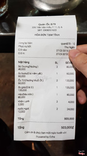 1.0Lừa đảo, giá cắt cổ :(((Giá thực đơn ghi Ốc giác xào mì 85K, nhưng khi tính tiền thành 135K, hỏi tại sao thì chỉ trả lời là lúc làm con ốc to hơn ??? Còn các món theo thời giá thì mắc dễ sợ, Ốc tỏi 60K/con, Sò dương 40K/con mặc dù kích cỡ ốc bình thường, ko to. 2 người ăn chơi chơi, ko nhậu mà hơn 500K. Mọi người cẩn thận nếu ăn ở quán này !!!! ...Xem thêm