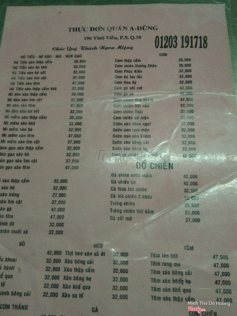 6.2Quán a dũng,vĩnh viễn,quận 10Quán bình dân .mình ăn ở quán này hơn 10 mấy năm rồi,giành cho dân lao động.hôm qua mới ăn lại cơm món ,hình như đã đổi chủ và người nấu nên món không đậm đà như trước. -thịt kho tiêu thì ít ,hơi ngọt, -cá lóc kho tộ thì hơi nhạt. -sườn xào chua ngọt thì không đậm đà nước sốt chua ngọt nhạt.lúc trước thấy xào nhiều rau giờ thấy xào ít rau quá . -canh chua thì nấu khá nhạt,cơm thì có cơm trắng và cơm chiên đỏ. -trứng chiên thịt thì chiên nát quá.phục vụ & nấu khá lâu. - canh tần ô tạm ổn -lúc trước mấy bạn nam trẻ nấu thấy nhanh lẹ,giờ thấy toàn phụ nữ nấu mà chậm và làm lộn đồ ăn hoài.quán thì view không đẹp & sạch sẽ.10 mấy năm trước đi ăn nó đã vậy giờ theo thời gian cũng vậy,trời khô thì đỡ chứ mưa là nước chảy dưới ghế ngồi.nên quán này chỉ hợp dân lao động.còn không mua mang về.giá giao động 5k -70k, 1 lát cá kho 29k.giá món theo dĩa khoảng 30k. ...Xem thêm