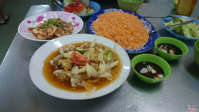 7.2Quán kế Thiên Tân!!Đó là tên gọi của mình với bạn để cho dễ hình dung!! Quán này nhỏ nhỏ nằm kế bên Thiên Tân, cũng khá đông khách, nhà bạn mình cũng hay ăn chỗ này, mình thì đến ăn khi đọc được review trên mạng. Thấy reveiw 2 món là tôm cháy tỏi và sườn xào chua ngọt nên mình đến gọi phần i chang :) , 1 set như hình 2 người ăn no căng nha. Nhận xét về món ăn: tôm cháy tỏi ngon, chất lượng, rất thơm. Sườn xào chua ngọt nhiều nhưng vị chưa đậm đà lắm, nhưng ăn khá ổn, cơm chiên ngon, nhiều, 2 người ăn. Có salad đi kèm, đỡ ngấy vì món nhiều dầu mở. Ah, cả 2 phần đồ ăn thì đều 60k, cơm mình k nhớ bao nhiêu, hình như là 15k thì phải :))) Nói chung chỗ này khá hợp lý khi không muốn vào Thiên Tân lúc nào cũng đông đúc xô bồ :)) ...Xem thêm