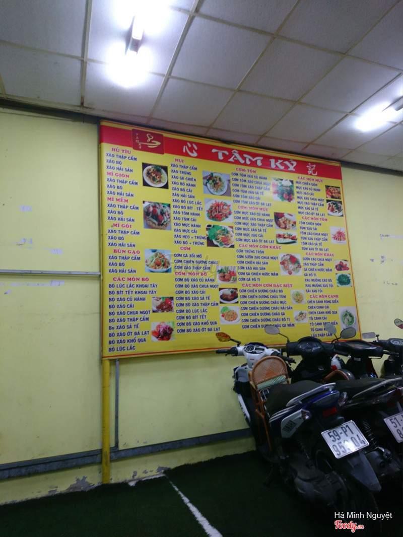 7.0Địa điểm quen thuộcVợ chồng mình hay đến đây trong hệ thống tâm ký nhất, phần do gần nhà, phần do để xe trong nhà luôn, ko lo nắng mưa. Món tụi mình hay gọi là cơm chiên sườn xào chua ngọt và cơm xào hải sản. Sườn chua ngọt 1 phần có 4 cục sườn được bọc bột chiên sơ, xào chung với hành tây, ớt chuông, cà chua, dưa leo. Phần cơm xào hải sản có tôm, mực, bạch tuộc, cá viên với các loại rau xào chung. Ăn 1 phần là no lăn về. 1 phần cực chất lượng mà giá thì chỉ tầm 35k - 40k thôi. Nhân viên phục vụ nhanh nhẹn, vui vẻ, nhưng vì trong nhà, chế biên lại ở bên ngoài cửa, quạt gió thổi, nên bị ám mùi kinh khủng. Ăn cơm mà y như đi ăn đồ nướng, chiên, xào về ấy. :( ...Xem thêm