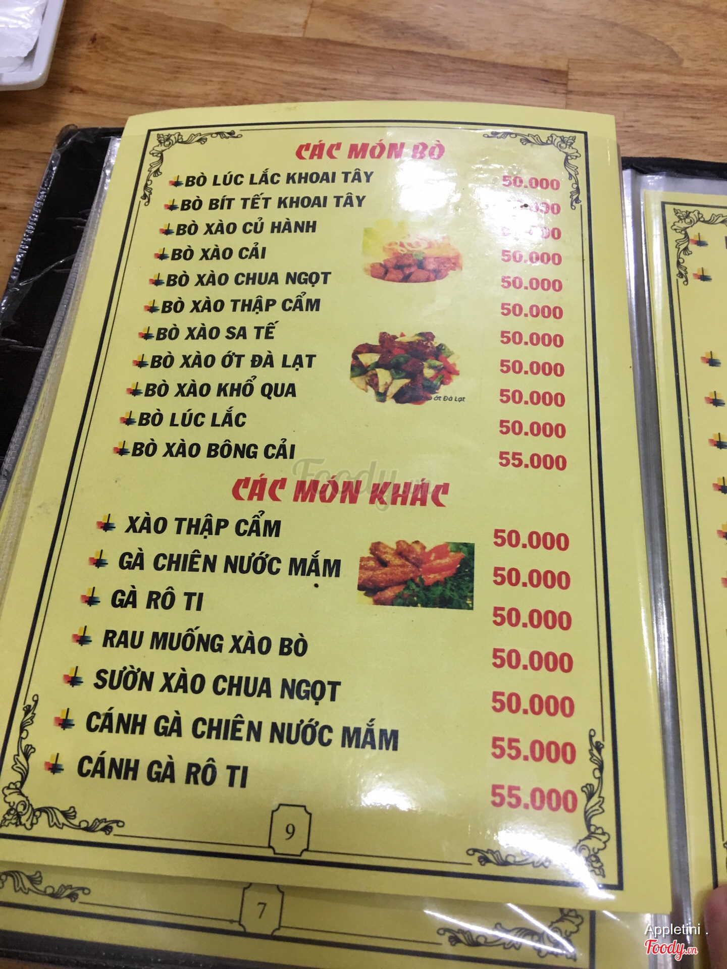 Ghi chú đặt bàn