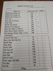 Ghi chú đặt bàn