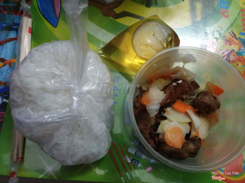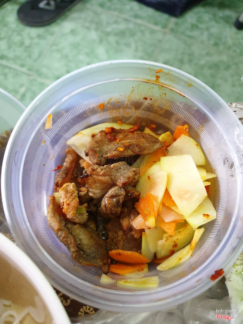 6.0Thịt khô cứngMình order ăn trưa. Giao hàng khá nhanh, bún nhiều, rau nhiều và nhìn sạch sẽ, nước mắm nêm nếm vừa miệng. Tuy nhiên thịt nướng rất khô và cứng mặc dù mình thấy vẫn còn độ ấm nóng. Vị thịt nướng theo mình là mặn, không có vị ngọt cân bằng khiến cho mình cảm giác thịt ướp nhiều muối. Giá cả phải chăng. Khả năng quay lại: 90% là không. ...View more